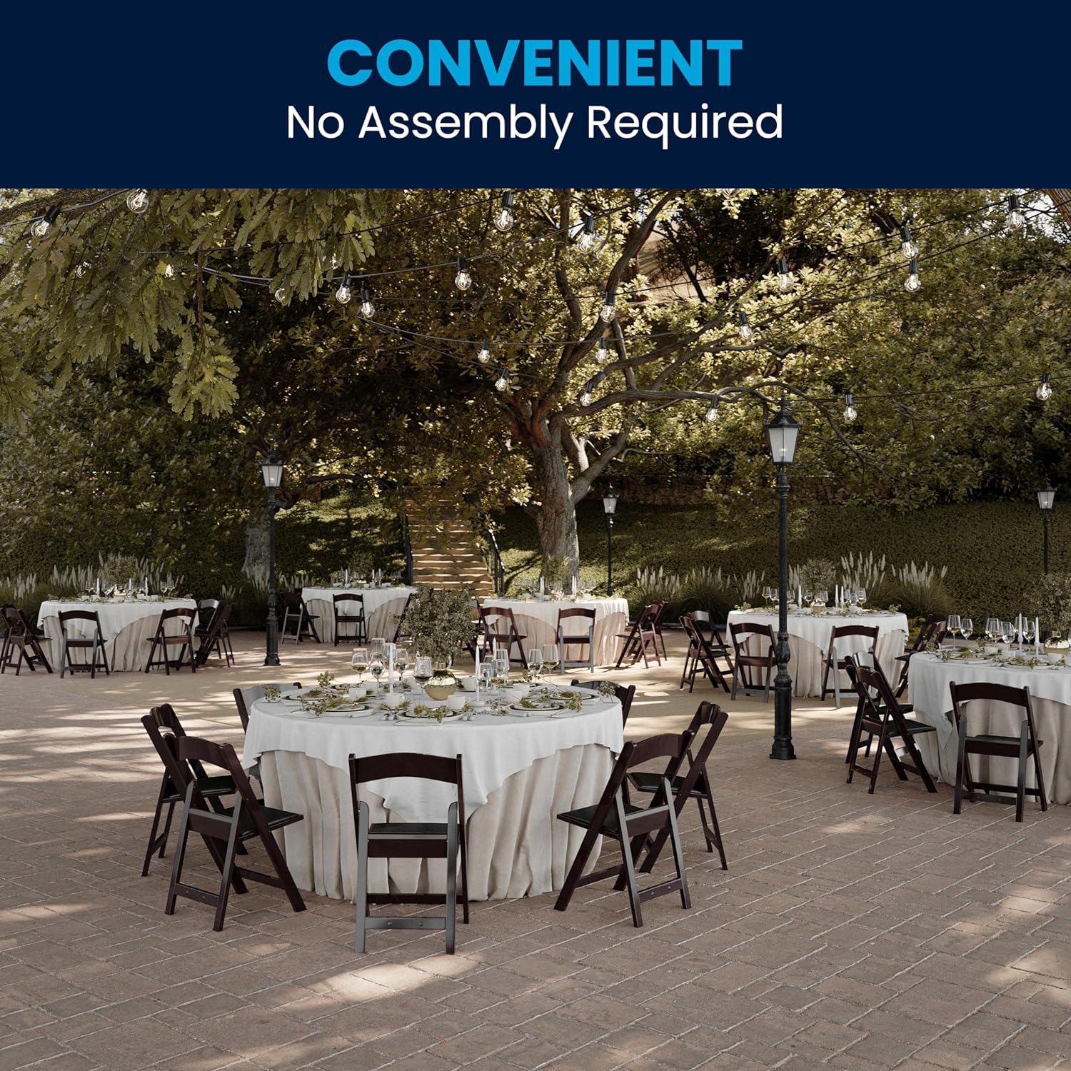 These low-maintenance party event chairs wipe down easily after luncheons and stack neatly for storage or floor maintenance. Make a smart investment by purchasing multiple resin folding chairs for your rental business, banquet facility or event venue. Purchase our folding chair dolly for quick and easy set up and take down.
