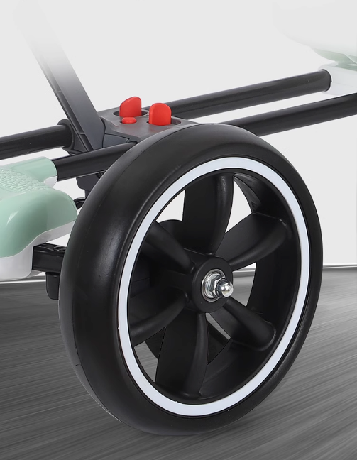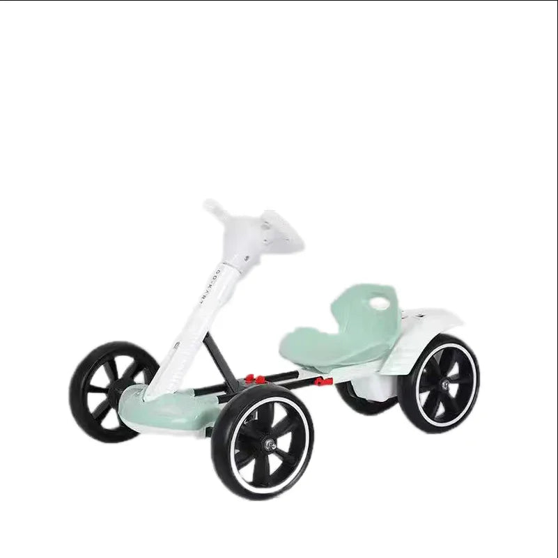 The Foldable Kids Electric Kart is engineered for optimal stability, as evidenced by its wide, triangular wheelbase. This design ensures that the kart remains steady during rides, minimizing the risk of tipping over, even during sharp turns or uneven surfaces. The strategic placement of the wheels in a triangular formation distributes weight evenly, providing a secure and balanced driving experience for kids. This enhances safety and confidence, making it an ideal choice for young riders.