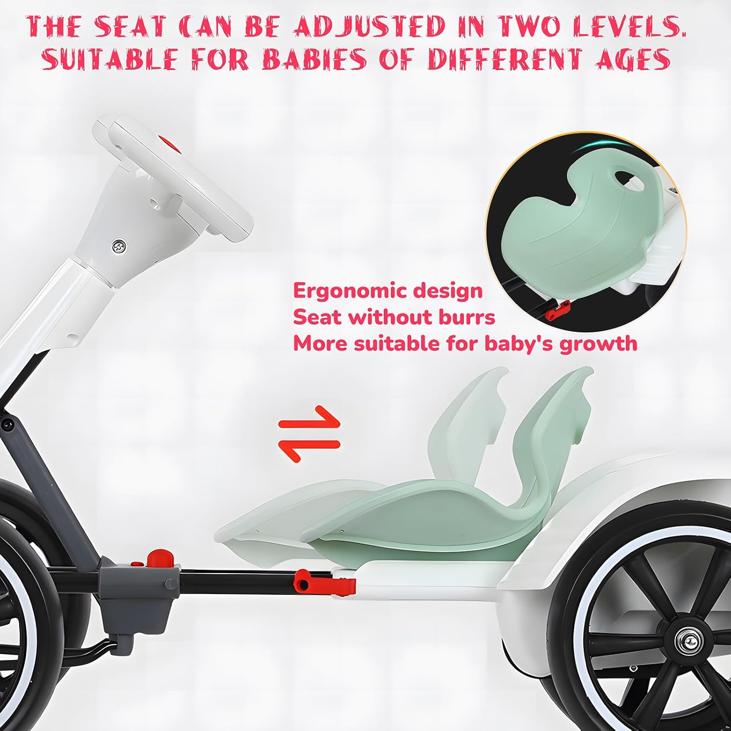 11. **Adjustable Seat**: Two-seat adjustments to accommodate a wide age range.