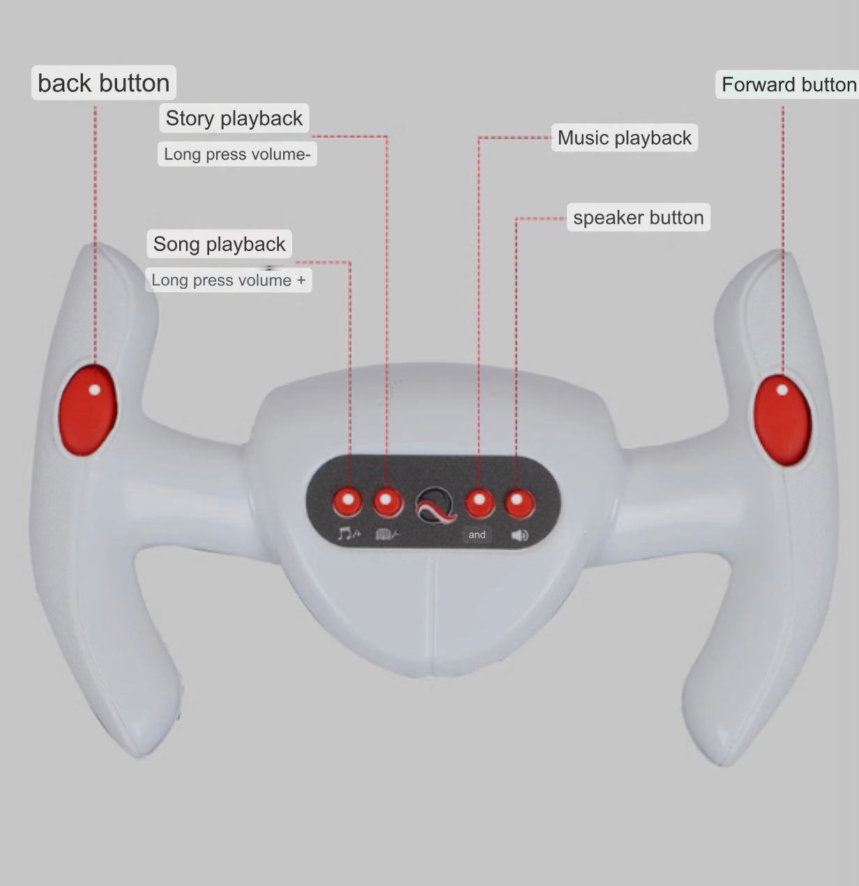 This intuitive design makes it easy for kids to enjoy their ride with fun music and stories while navigating their kart!