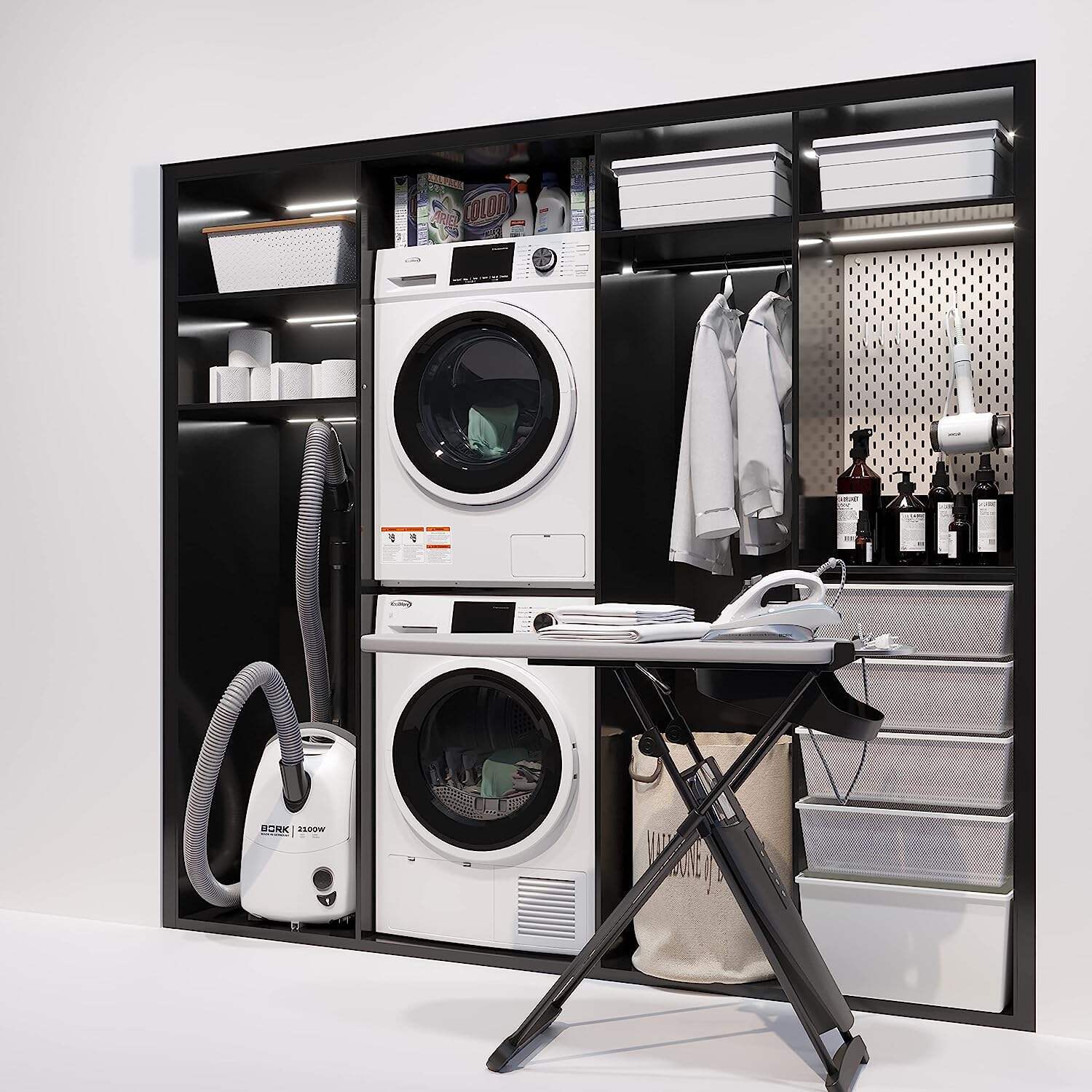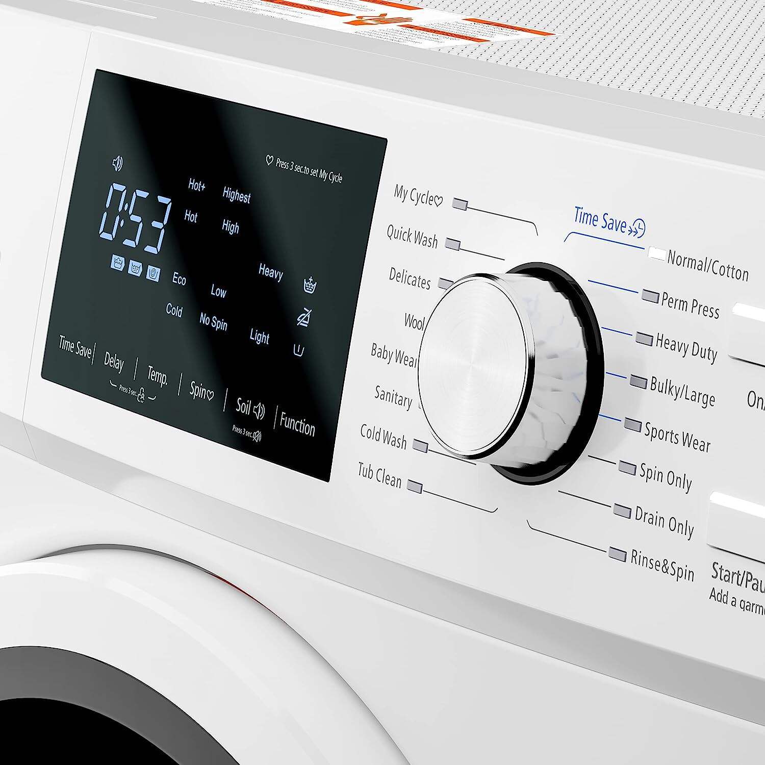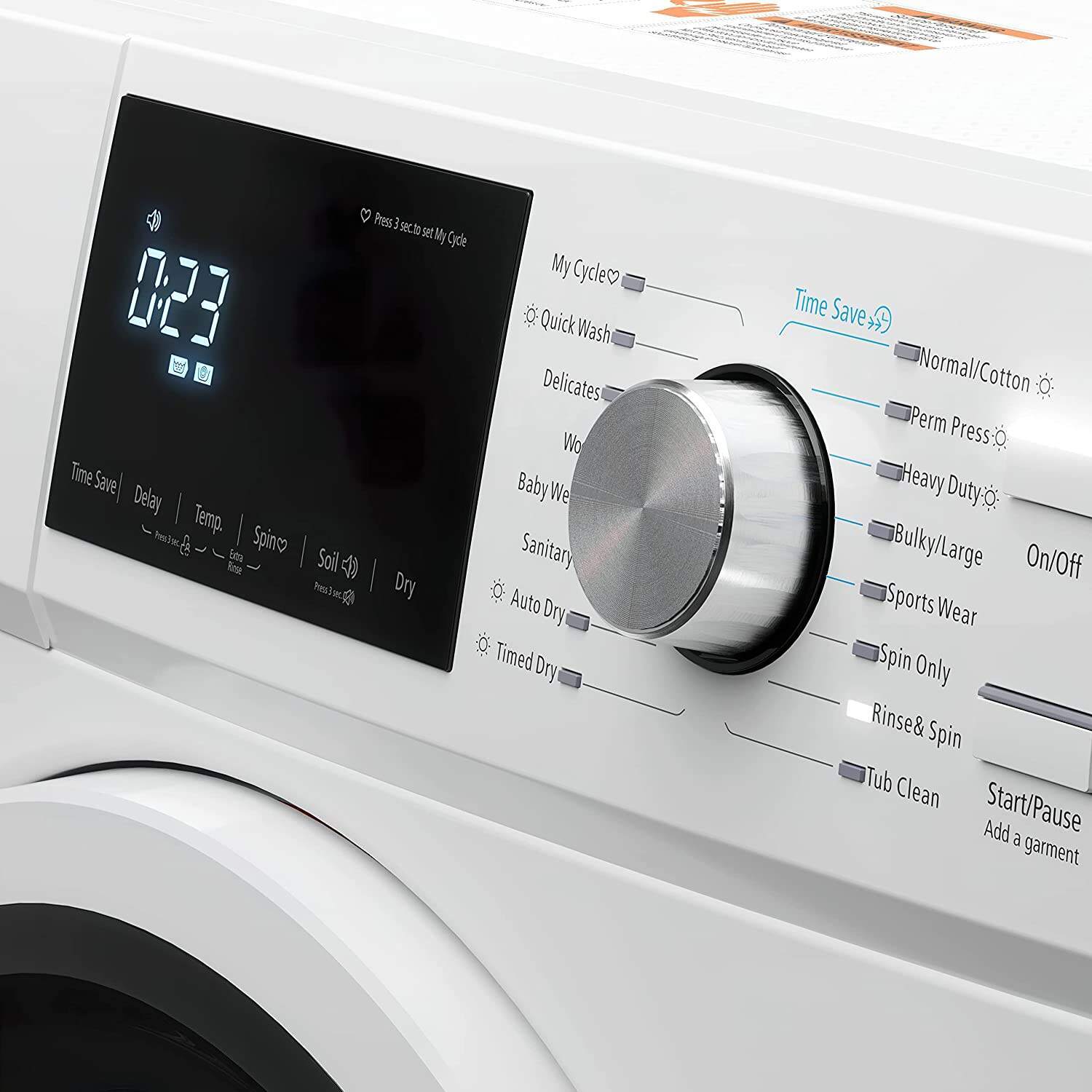 - Compact Front Load Washer – Utilizing a quiet inverter motor, This energy-saving front load washer boasts 16 washing cycles for improved efficiency and versatility in cleaning towels, delicates, sports and fitness wear, jeans, and more.