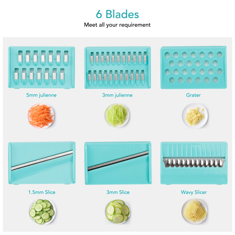 Place the slicer on a clean table, press and turn the button on the side of the slicer, adjust the required thickness or shape of the food according to the thickness of the slice onto the button, and slide the food up and down on the vegetable, that is, it can be easily used.