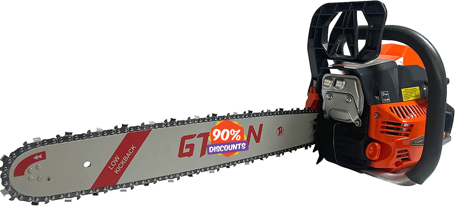 - [Great Power & High Efficiency]:GTHAN 60cc 20 inch powerful gas chainsaw with guide bar and chain for cutting wood that need a longer bars. 2 stroke motors with integrated chain brake for safety and stable while operating,which is high efficiency, high power, reliable work, and long life.Excellent & reliable ignition system: Electronic ignition for powerful smooth running.