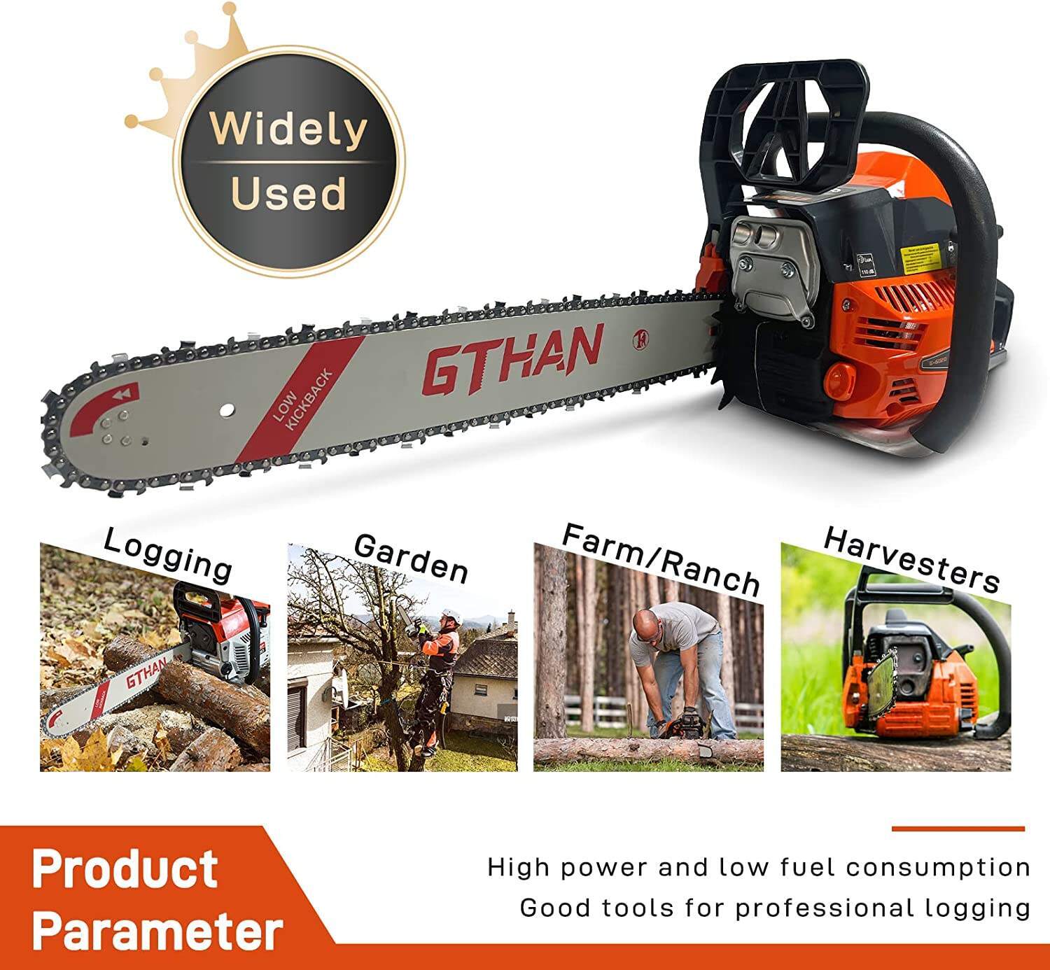- [Best Service For You]:GTHAN Gas Chainsaw has the advantages of high power, high efficiency and light weight. You could contact us to solve your problems,like Technical Support,Missing parts,Damaged Parts,Parts wear and tear and so on.If there is something problems with accessories ,we will sent you a new parts.
