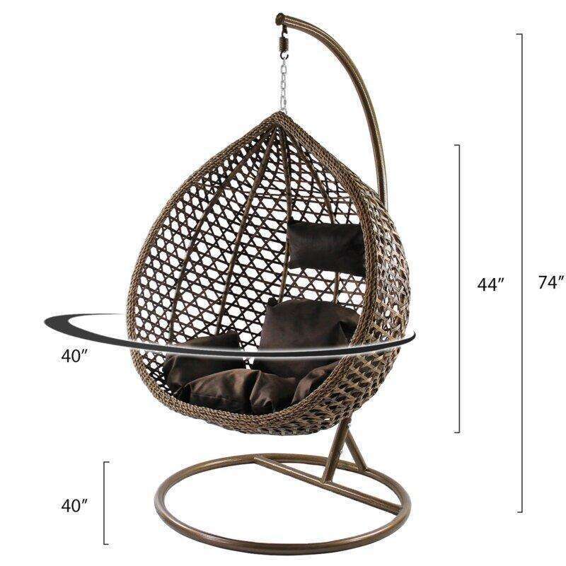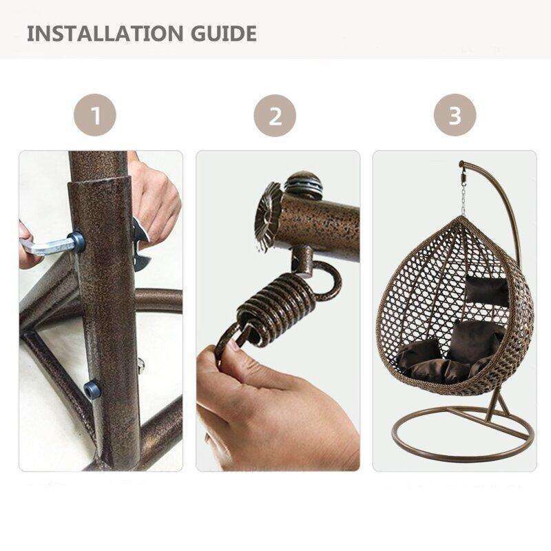 - Material, wicker plastic, steel frame, cotton mat, easy assemble. Built from thick brown meshed wicker, this chair will have you cradled and hanging in comfort as you enjoy the refreshing breeze of the great outdoors. From summer lounging to stretching out with a good book, this hanging basket chair will have you relaxing with ease.