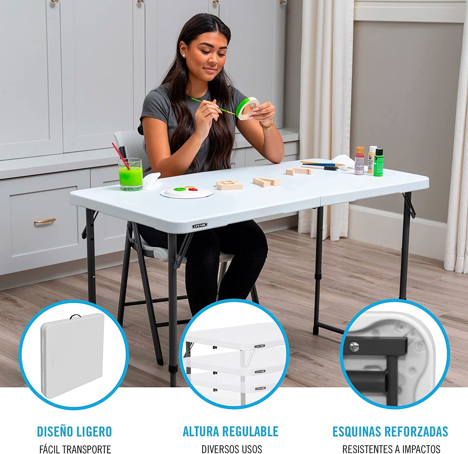 - All purpose table constructed of powder-coated steel and high-density polyethylene plastic