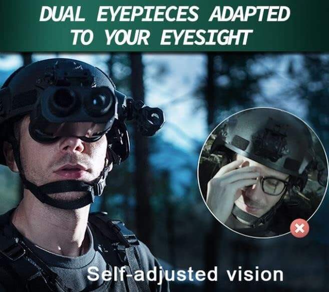 - 💯【 SELF-ADJUSTED VISION BINOCULARS 】- These helmet night vision goggles come with independent dual eyepieces, which can be adjusted to suit each eye. As a result, you do not need to wear extra glasses whilst using our military grade night vision goggles whether you are short or far-sighted. ( Myopia refraction adjustment range +/-3. Hyperopia 300° adjustment compensation )