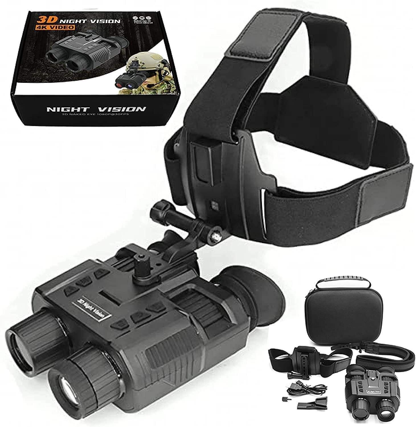 - 🥽【 4K HIGH-PERFORMANCE NIGHT VISION GOGGLES 】- Our upgraded 4K head mounted night vision binoculars features 3d display, adjustable 7 level IR infrared spotlight and brightness control . Built in dual screen with 1.4-inch 390x390 TFT inner screen. This high-powered professional light weight helmet NVG binoculars allows you to capture a clear photo or video even in 100% darkness at a range of 3000m.