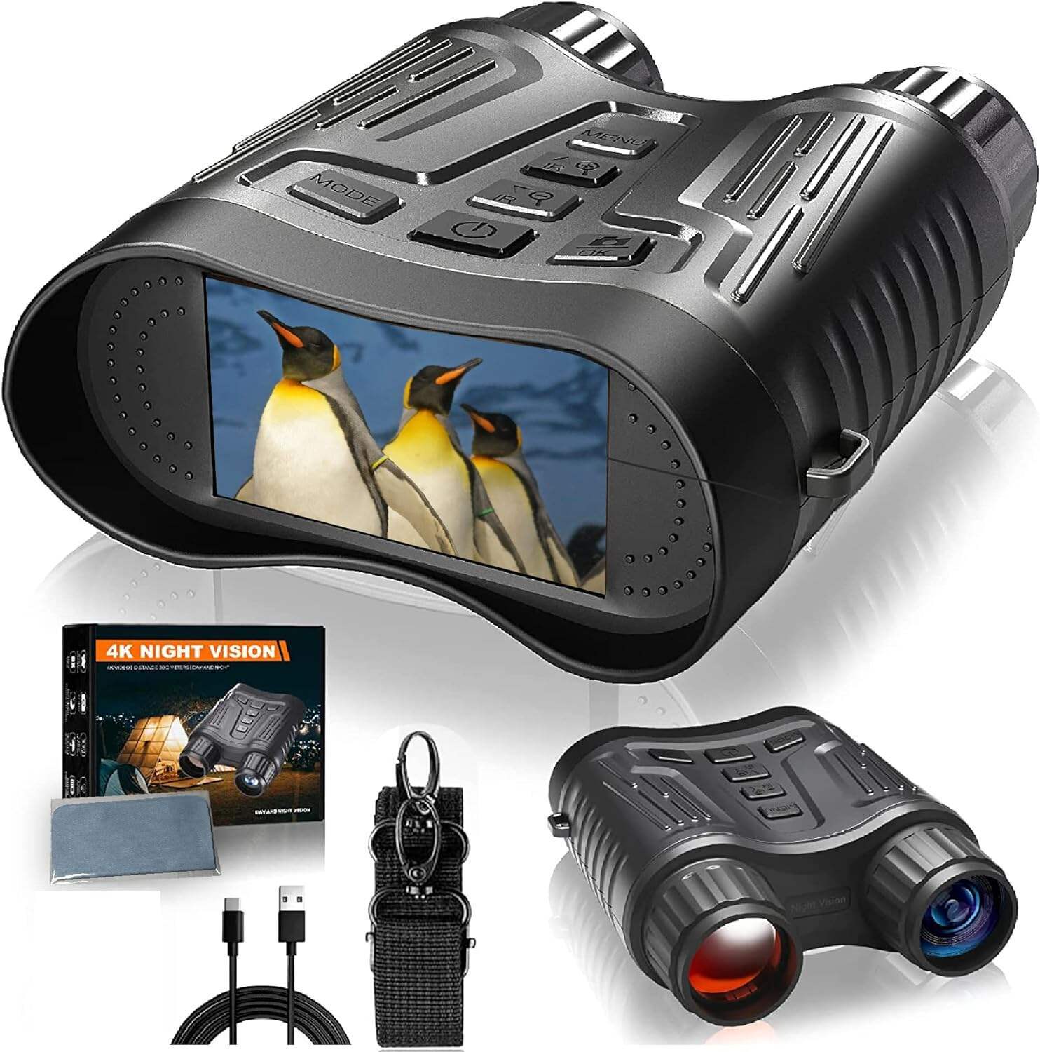 - 📸【 VERSATILE AND PORTABLE DESIGN 】- These digital infrared binoculars night vision goggles measure only 152*122*55mm and weigh 440 grams. Being so small and lightweight they are comfortable to wear on the head and they can also be fitted on a helmet. Very convenient for professionals and hobbyists alike. This 4K digital night vision binoculars with camera is perfect for day/night shooting, hunting, camping , surveillance etc.