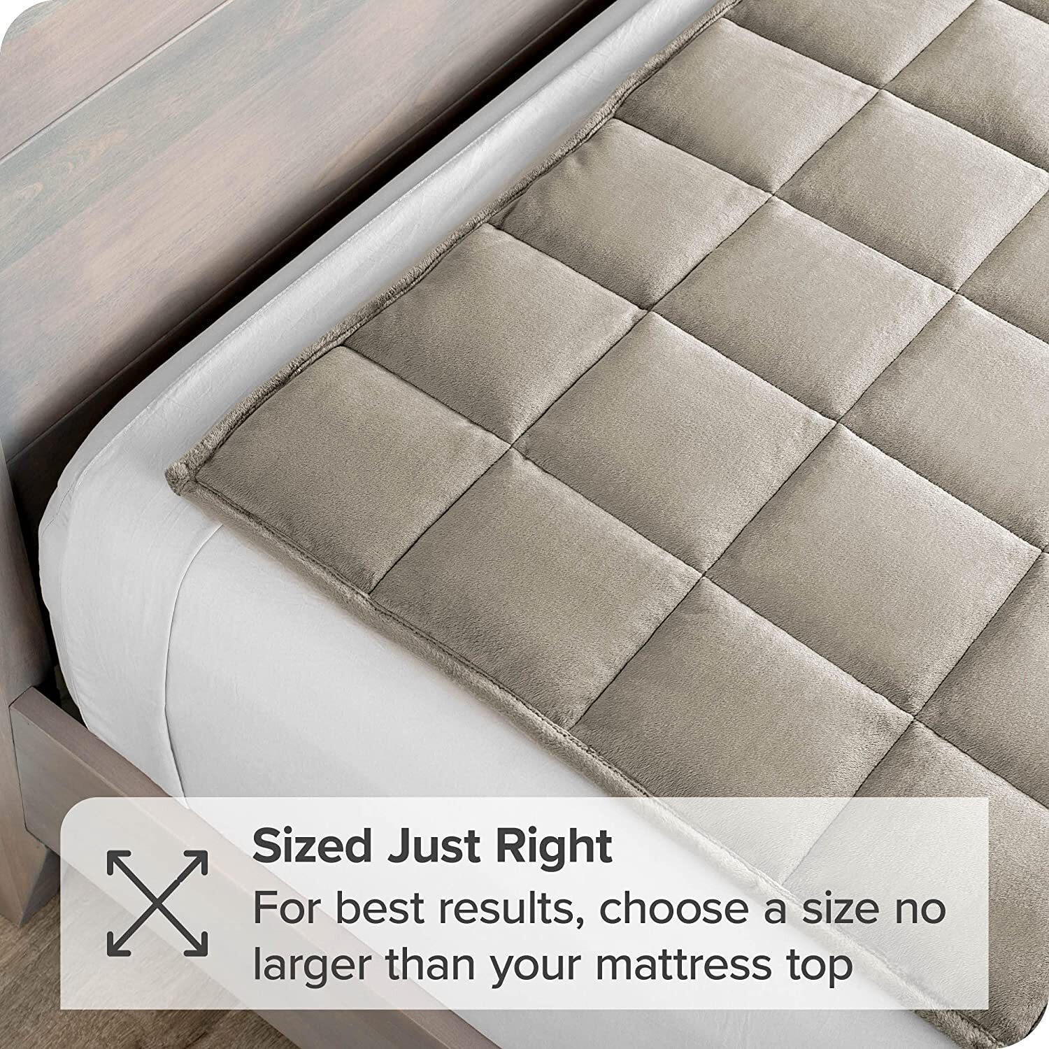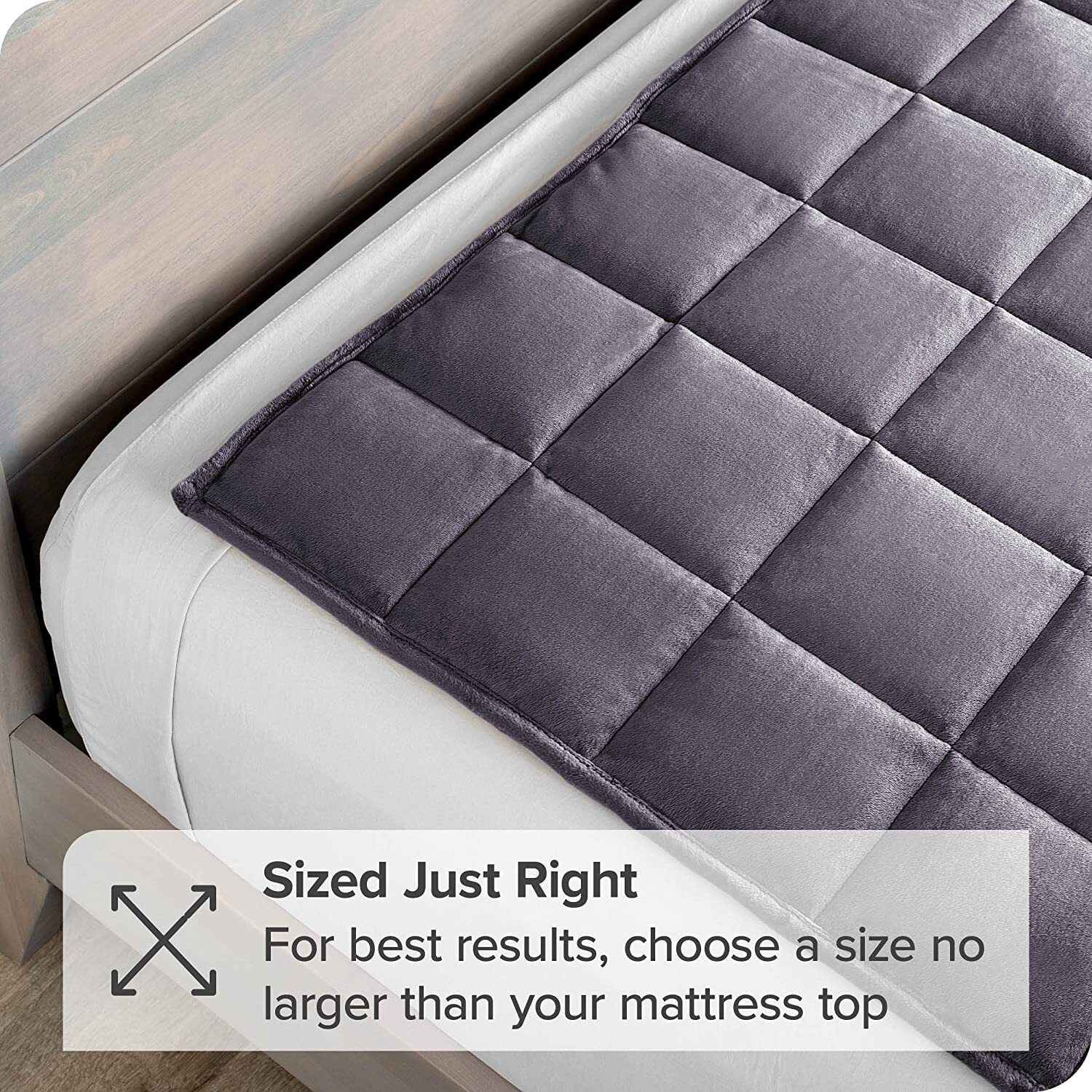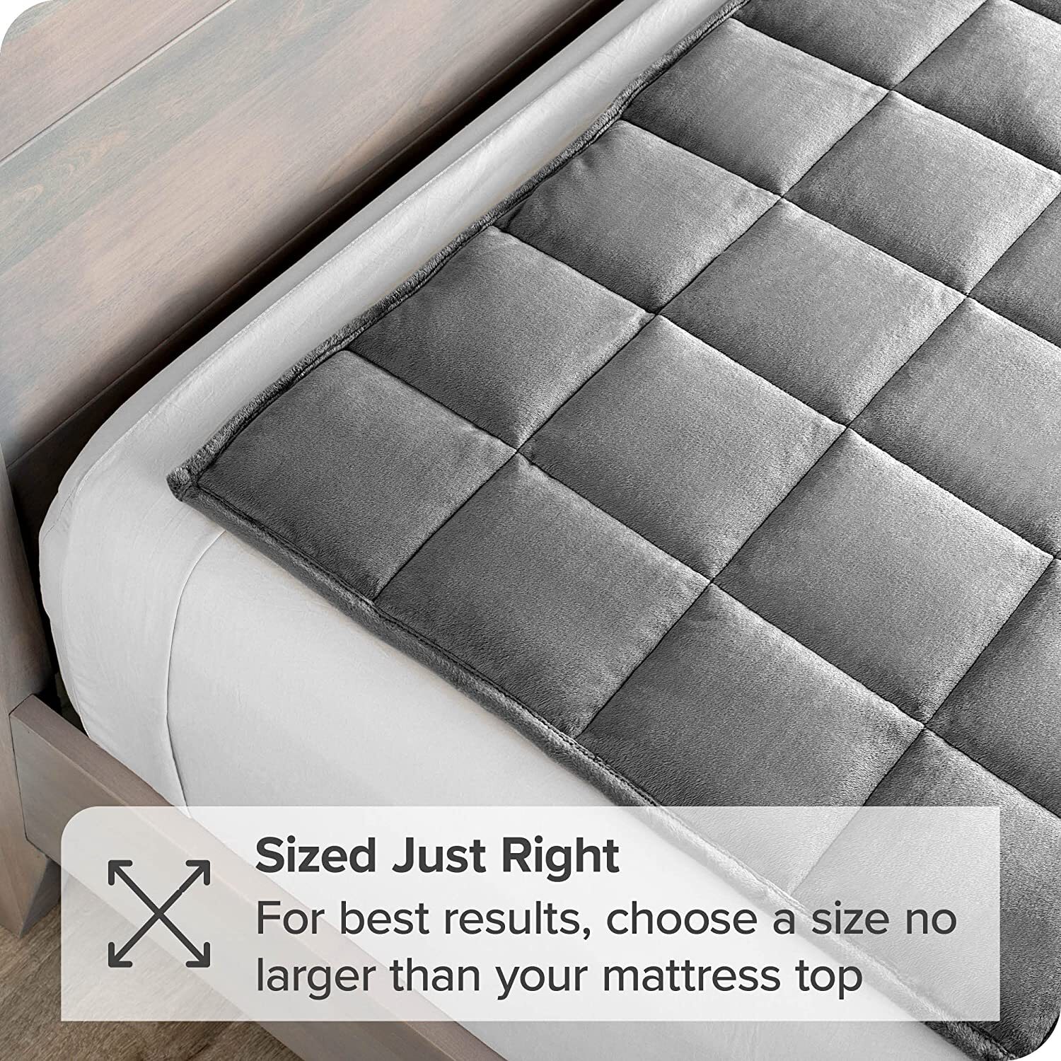 - HOW TO CHOOSE: The weight of the blanket should be about 10% of your body weight. For example, a 150 lb adult would use a 15 lb weighted blanket, and a 65 lb child would use a 7 lb weighted blanket. The blanket should be no longer in size than the top of your mattress and should not hang over the sides of your bed. Please reference our chart to determine which blanket is right for you.