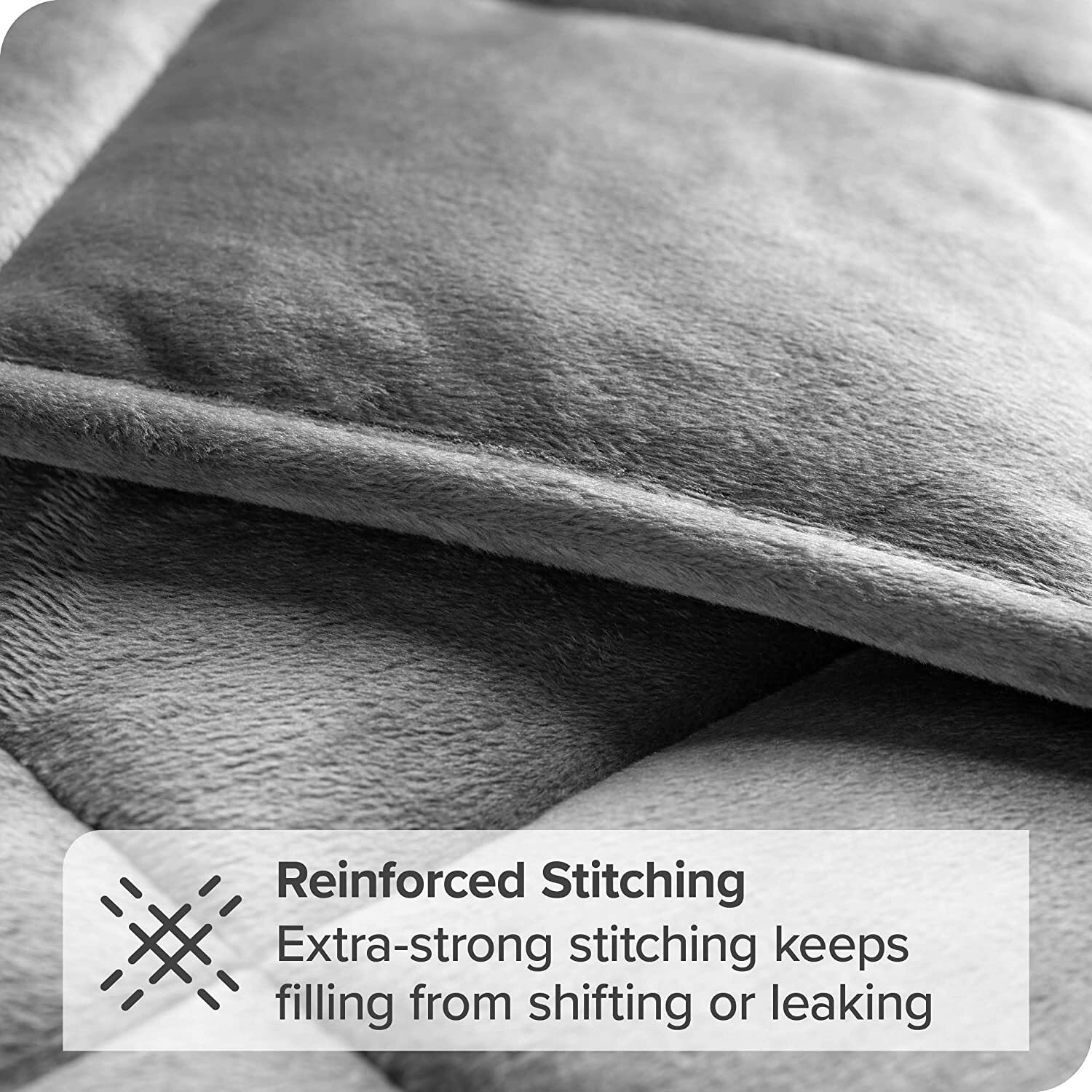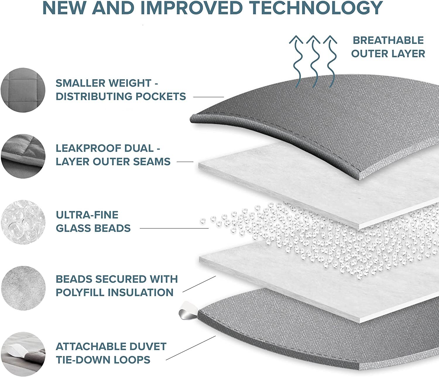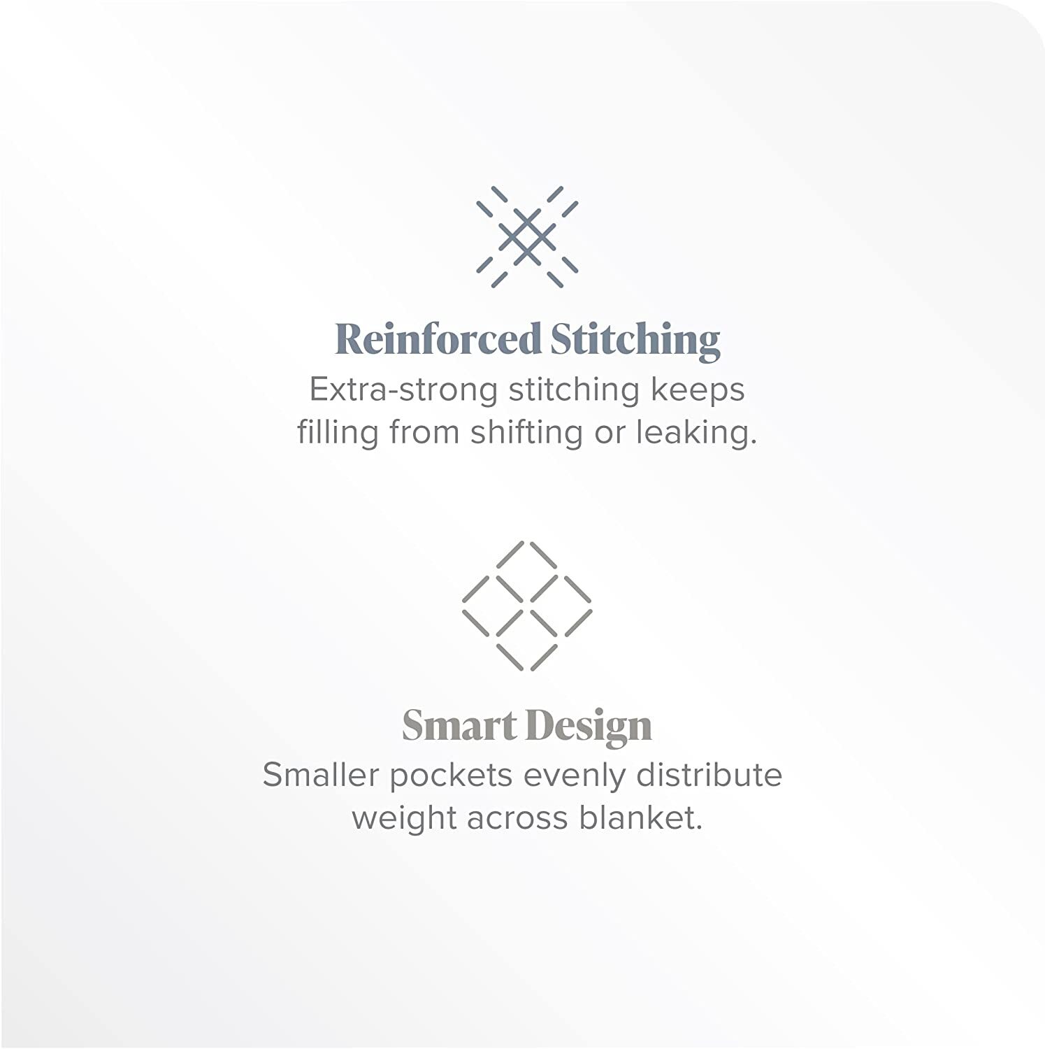 - UNIQUE DESIGN: The structure of Bare Home Weighted Blanket is designed with reinforced stitching to prevent beads from shifting or leaking while you are sleeping. Smaller pockets allow for even distribution of weight over the surface of the body. Our blanket features corner loops that can be used to secure a Bare Home Duvet Cover with corner ties. OEKO-TEX Standard 100 Certified free from harmful chemicals and dyes. Label ID: BJ025 166847