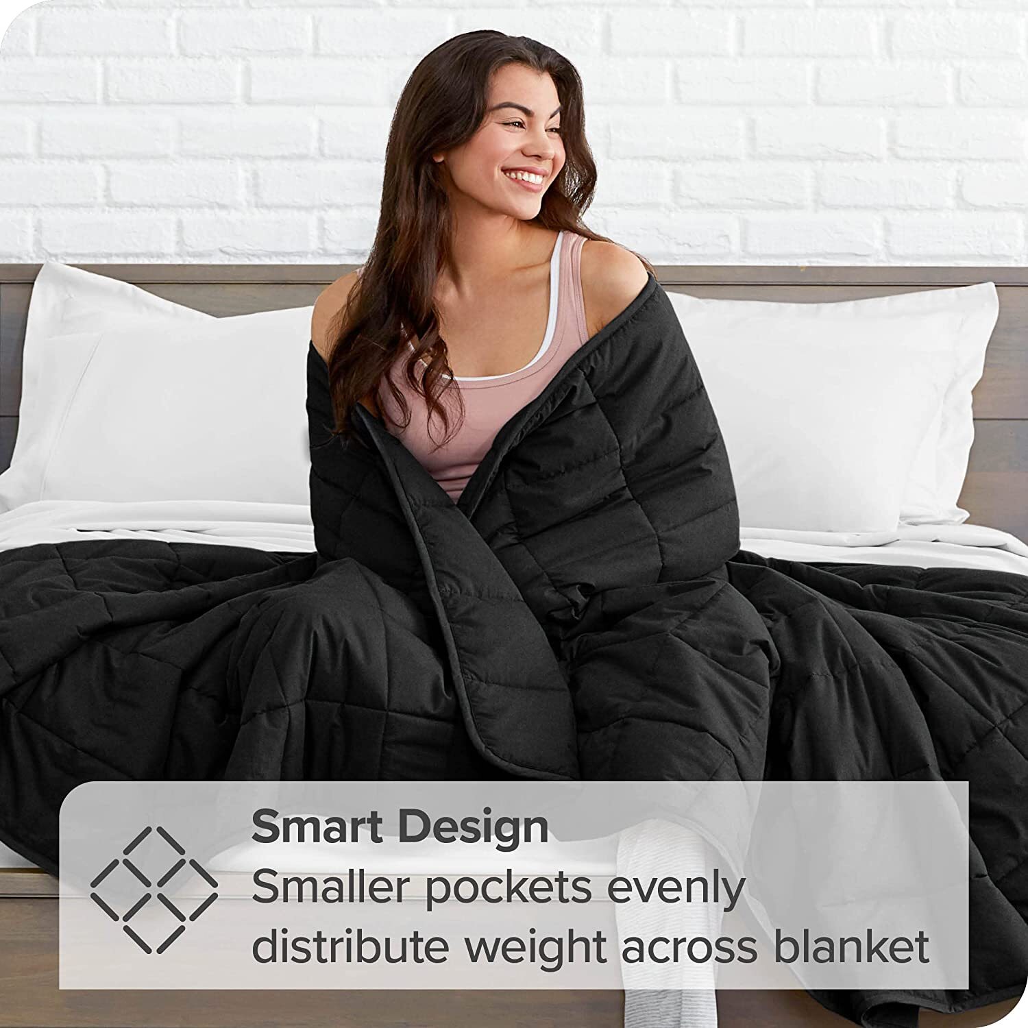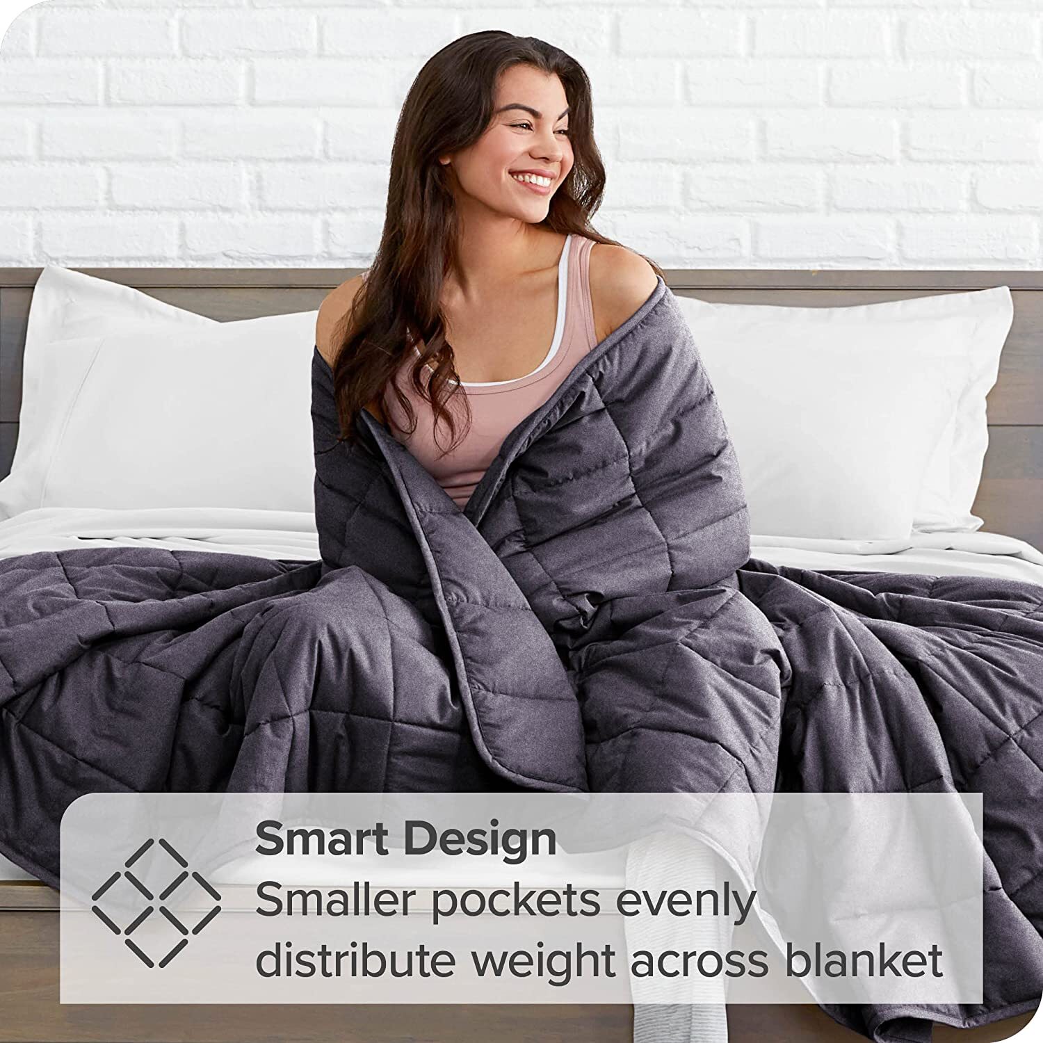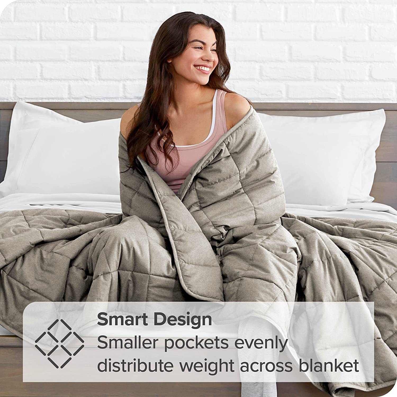 - UNIQUE DESIGN: The structure of Bare Home Weighted Blanket is designed with reinforced stitching to prevent beads from shifting or leaking while you are sleeping. Smaller pockets allow for even distribution of weight over the surface of the body. Our blanket features corner loops that can be used to secure a Bare Home Duvet Cover with corner ties. OEKO-TEX Standard 100 Certified free from harmful chemicals and dyes. Label ID: BJ025 166847