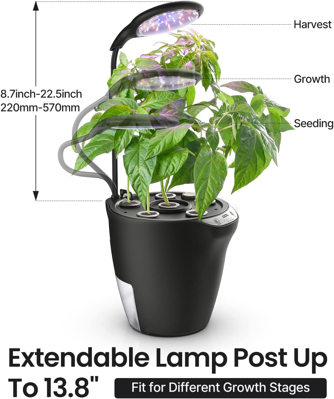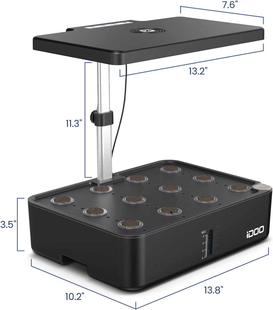 - Growing 12 Plants at Once, Up to 11.02" in Tall: The height of the lighting part of the hydroponics growing system can be adjusted for plants at different growth stages. Grow 12 plants at a time, works up to 11.02 inches.