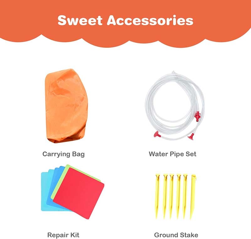 - Water Sliding Fun: Connect the hose to a tap, it is suggested to use a 350W air blower, your kids will have endless fun with this water slide. The spray head continuously sprays out for added joy.