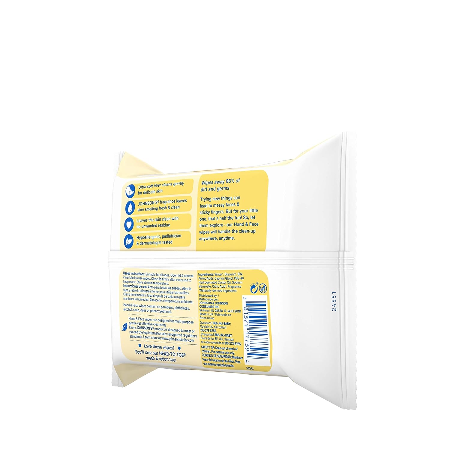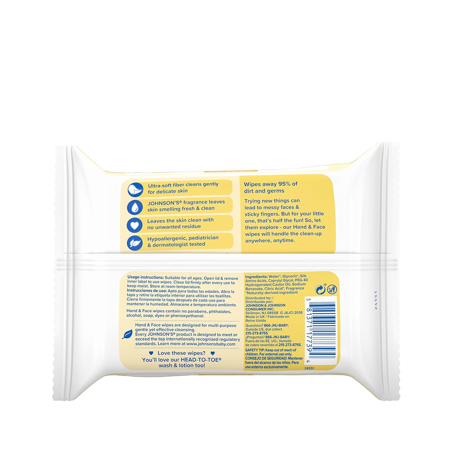 - 25-count pack of Johnson's Baby Hand and Face Gentle Cleansing Wipes, featuring Johnson's Always Mild & Gentle formula, for quick & easy cleaning of your baby's delicate skin with no water necessary