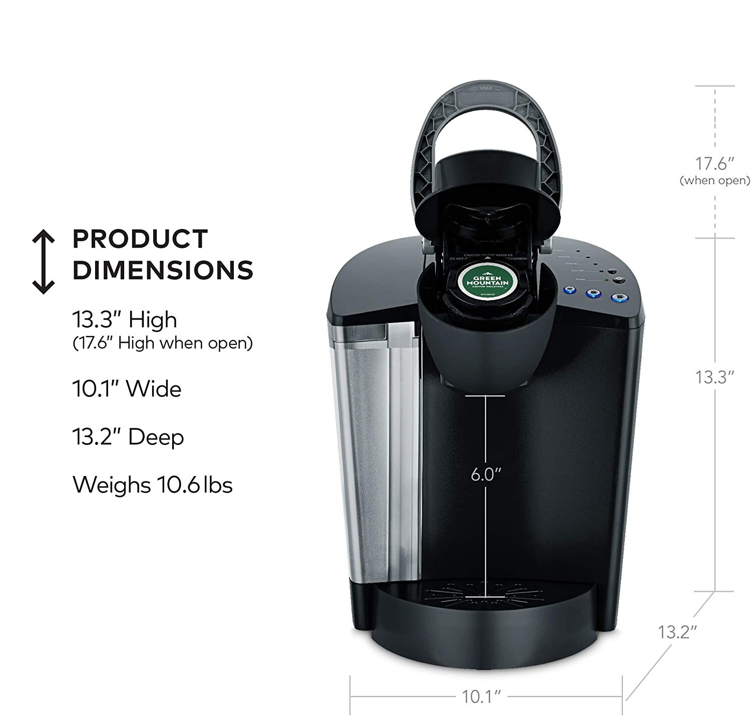 - Brews multiple k-cup pod sizes: (6, 8, 10 ounce) – the most popular k-cup pod brew sizes. Use the 6 ounce brew size to achieve the strongest brew.