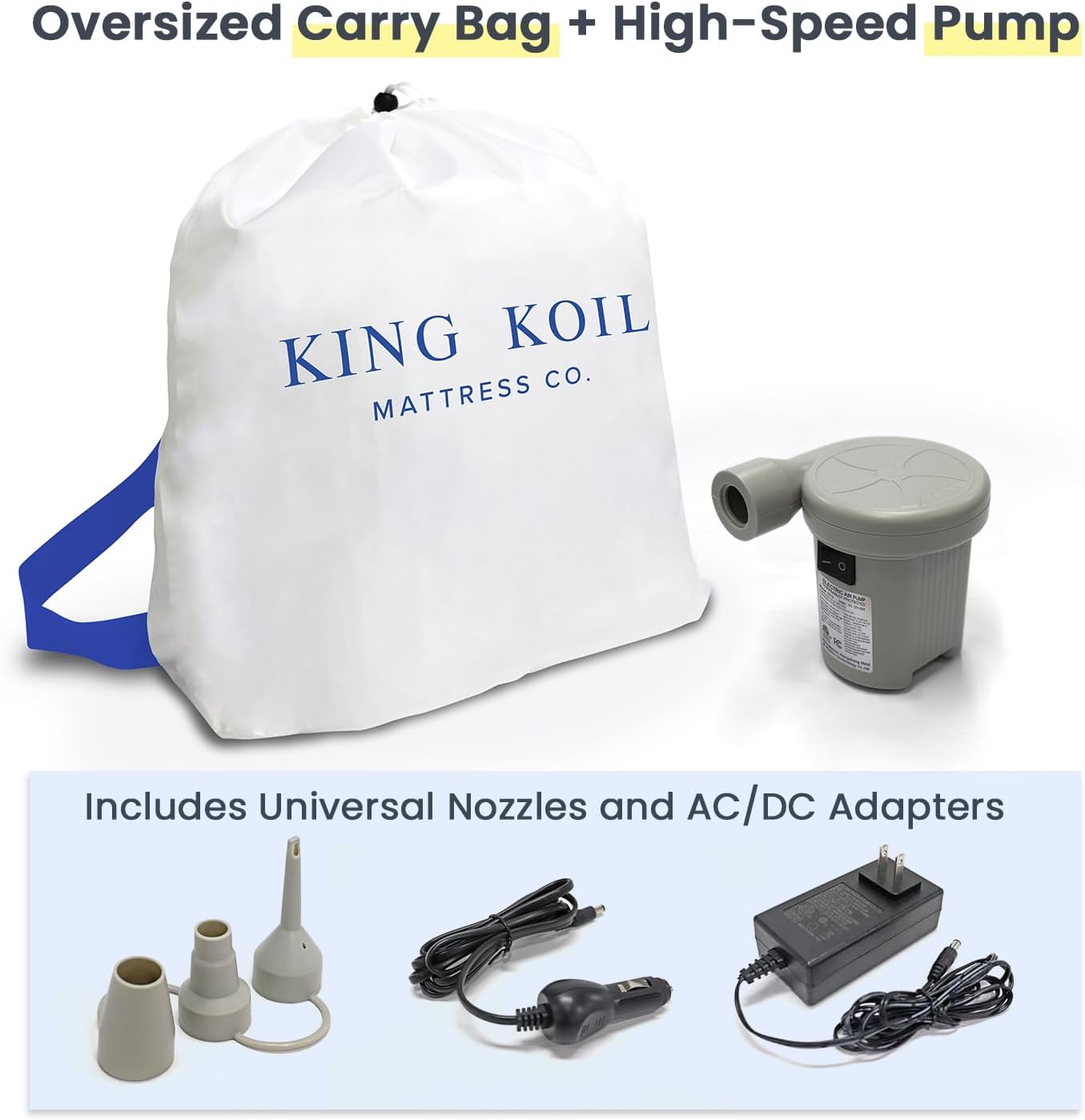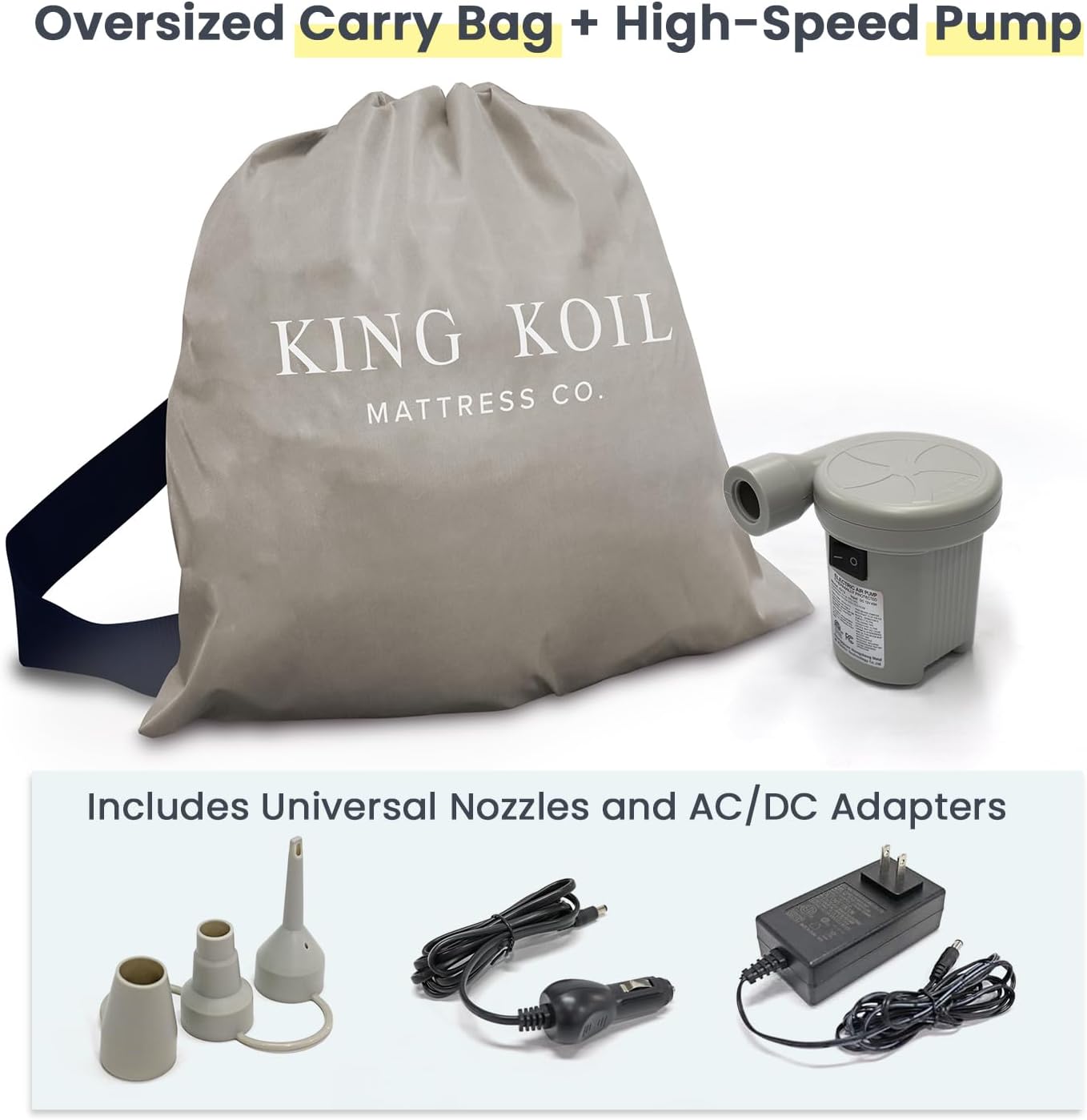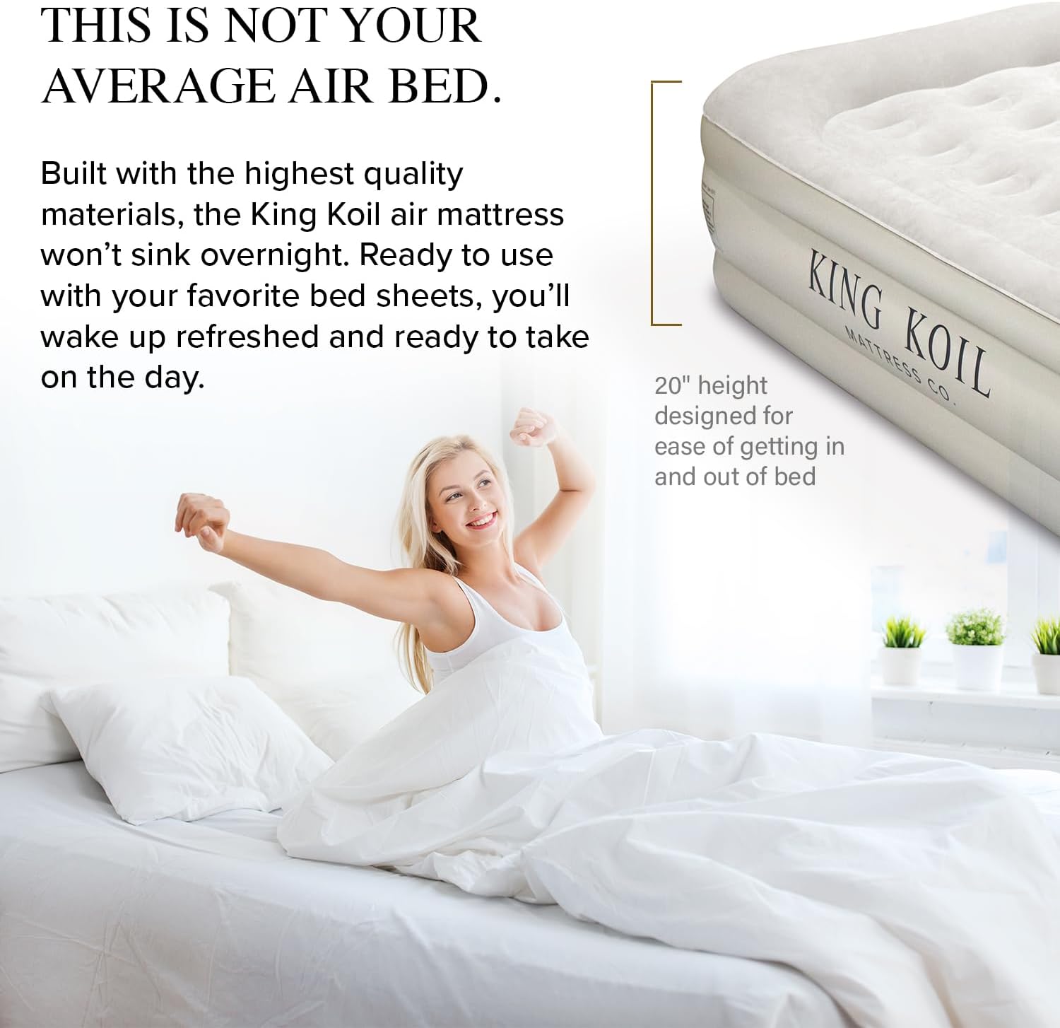 - COMMITTED TO QUALITY & CUSTOMER OBSESSED: With features like enhanced air retention, effortless setup, and a premium design, the King Koil queen air mattress is the last airbed you'll ever need!