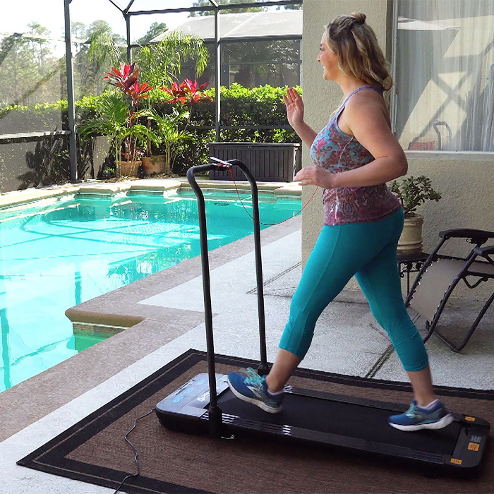 Space-saving and convenient Overall size of treadmill: 50.8” x 27.2” x 43.3”, complete folded size: 50.8” x 27.2” x 6”, it can be easily used as a walking machine under desk or other places.