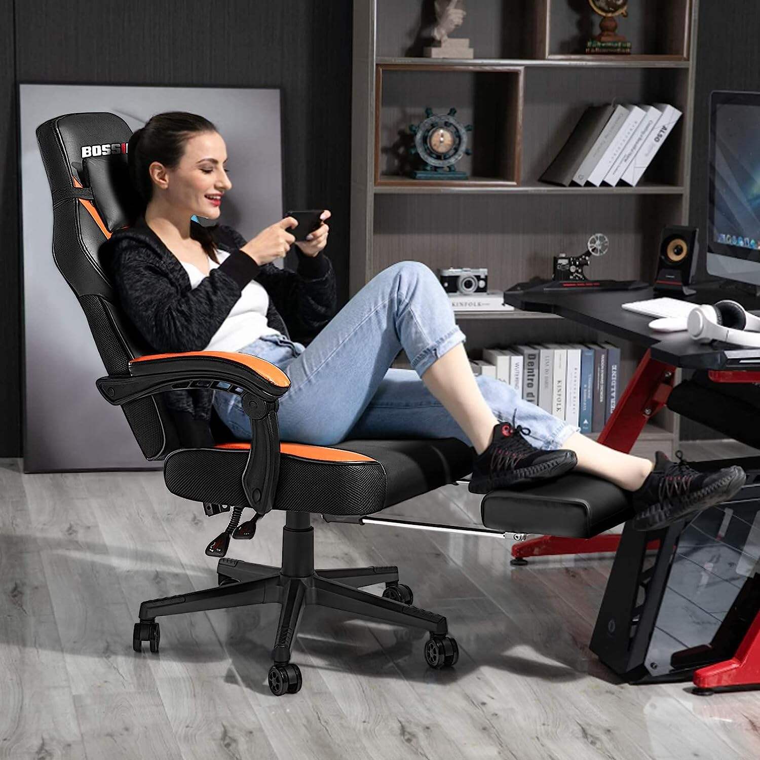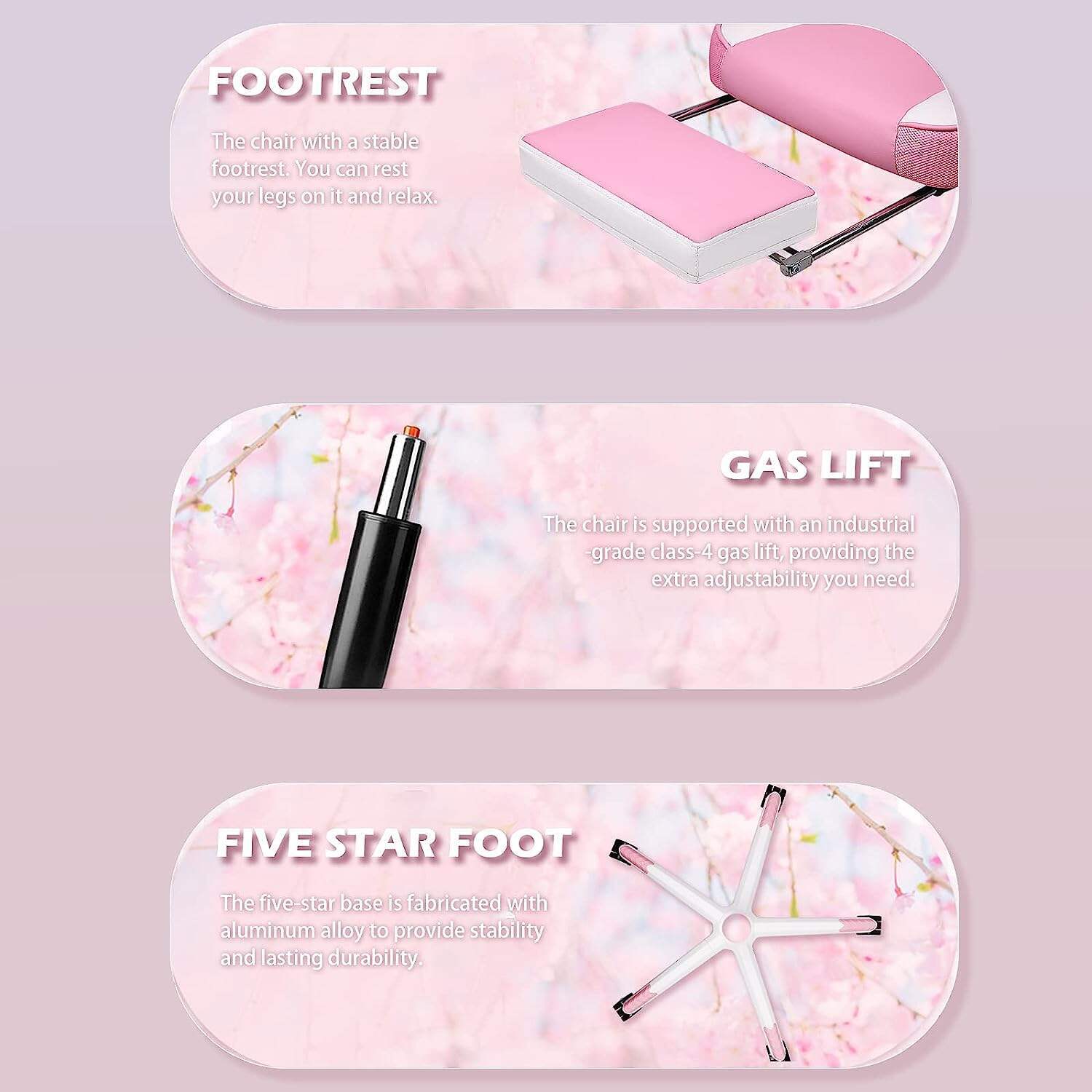 - 🕹️【Safety and Comfort Computer Chairs】Class 3 gas lift, durable, reliable and supports up to 400lbs. High load-bearing capacity of 5-star base.Rubber casters, rolling quietly and tested by 1000 miles rolling. This is a gamer chair for adult teens and kids.