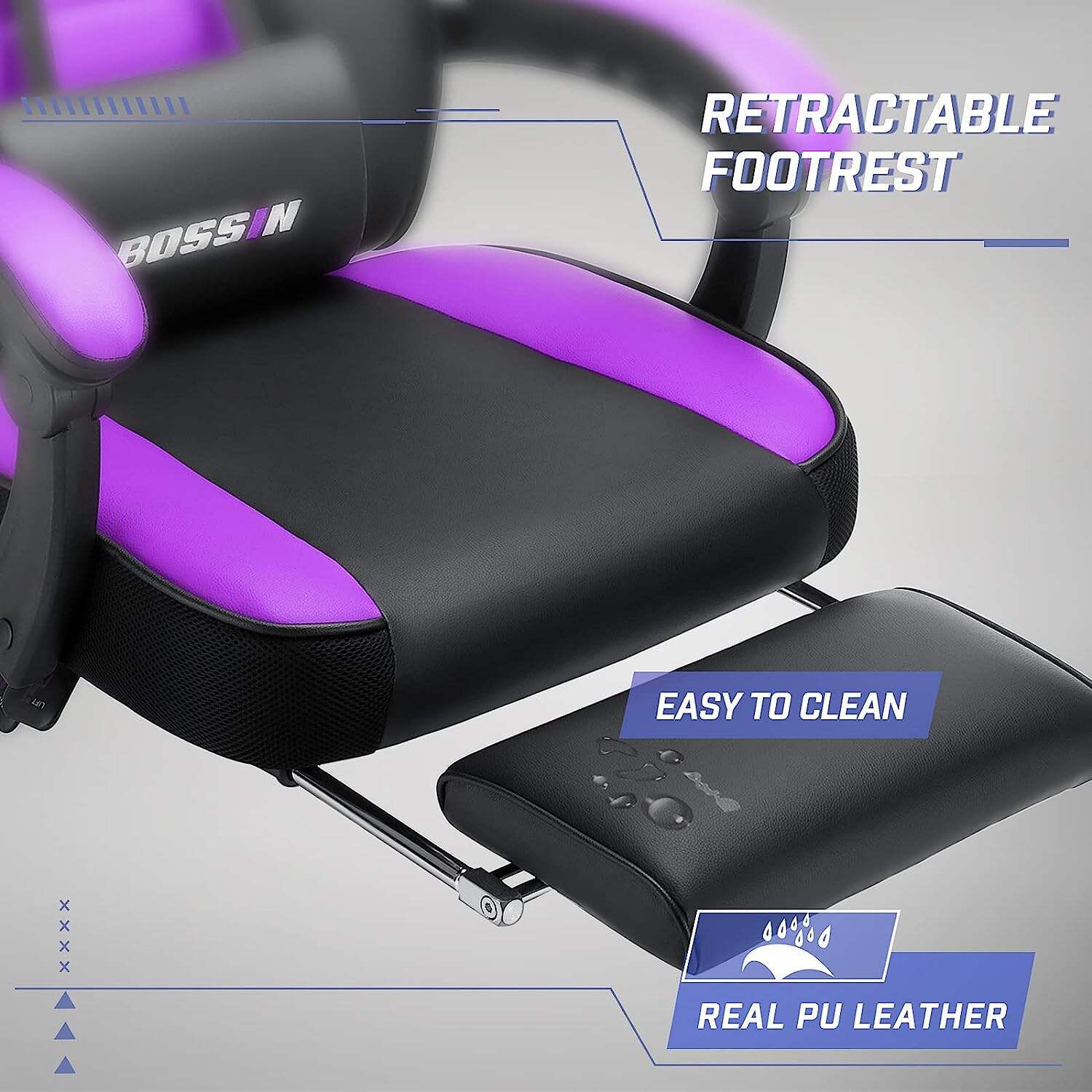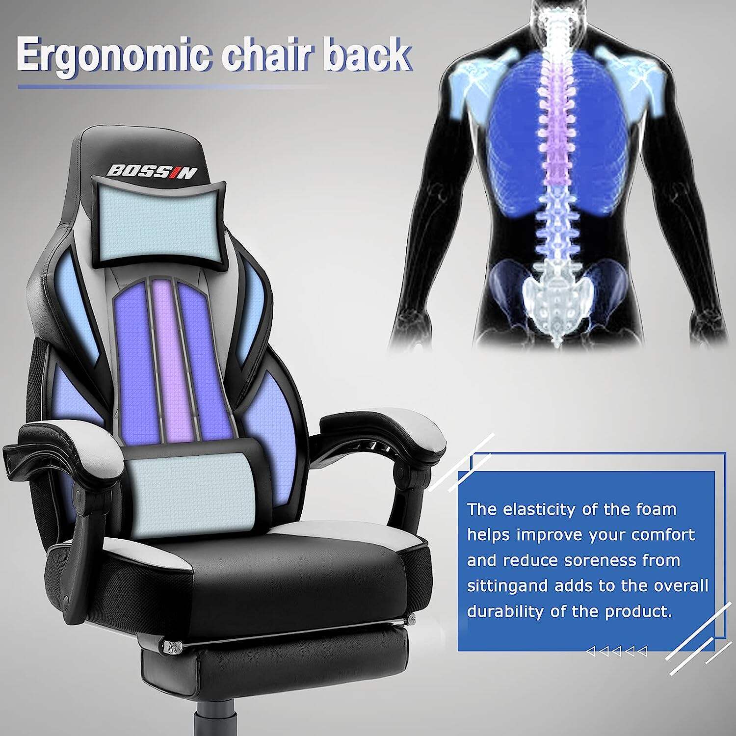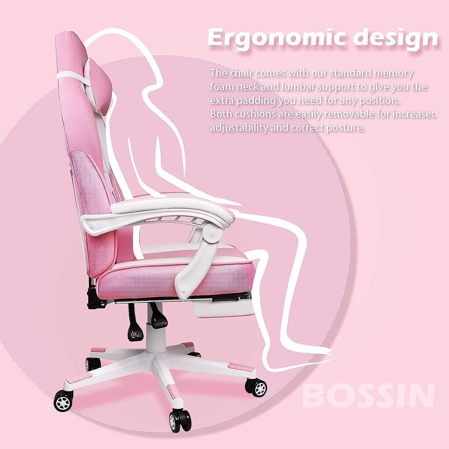- 💺【Big and Tall Gaming Chair for adult】 The design is different from other e-sports chairs because it has a larger seat, perfect for adults. It can hold up to 400 pounds.The ergonomic body-hugging high back provides lumbar support naturally fits your shoulders, head and neck.And the chair come with footrest,When you don’t want to straighten your back and sit,just take out the footrest. Enjoy the gaming with footrest!