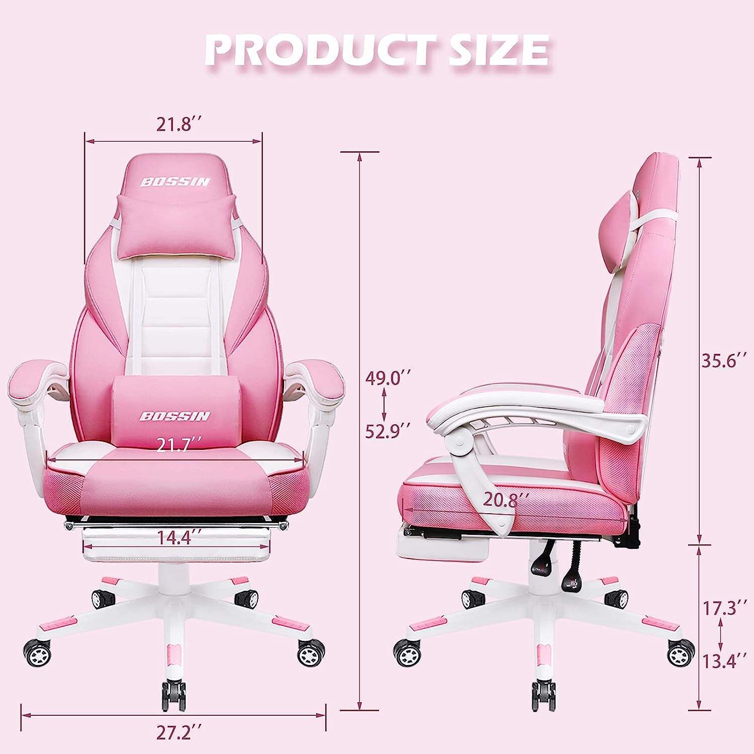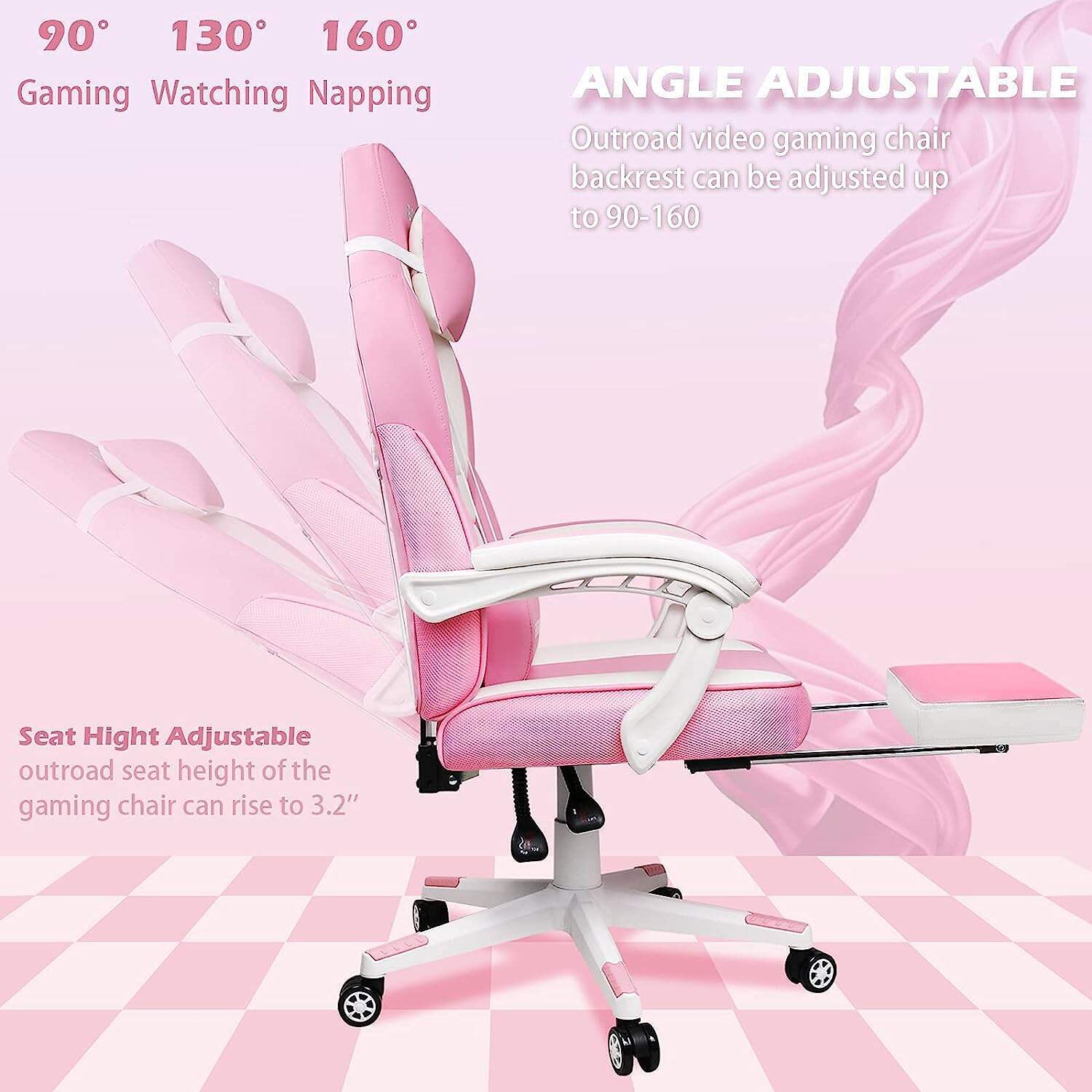 - 📺【Multi-Function Adjustable Game Chairs】This computer chair has an adjustable seat height feature that enables you to lower or raise your seat between 13.4 to 17.3 inch.360 Degree Swivel and omni-directional Wheels. 90 - 155 degree adjustable backrest.Massage lumbar support can relax your lumbar. You can sit it when you play computer. You can also use it as a PS4 chair or office chair.