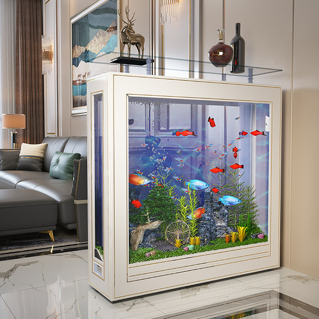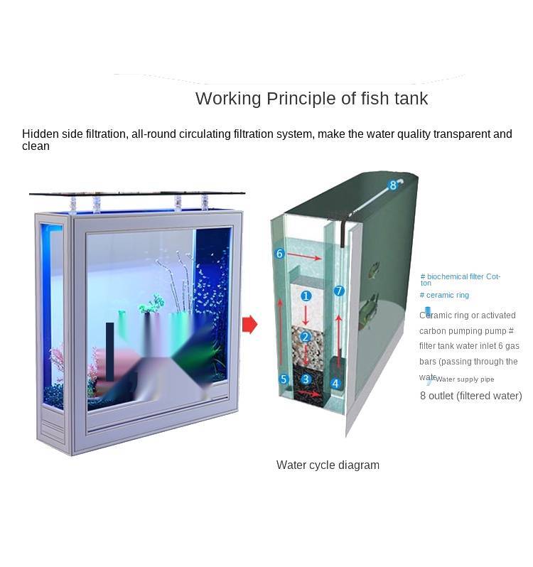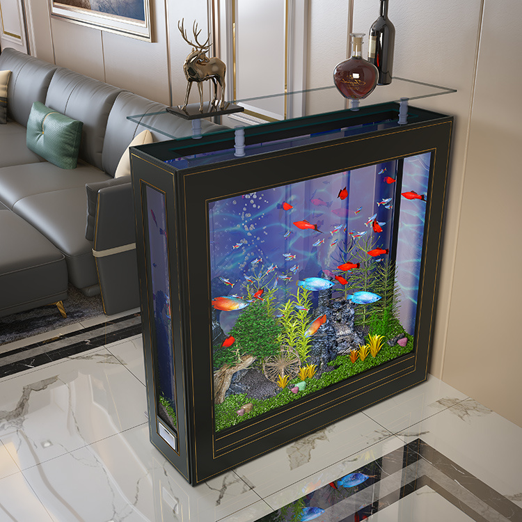 Indulge in the luxurious charm of this meticulously crafted fish tank, designed with sleek aesthetics and a generous capacity. The unique ecological screen at the bottom allows you to create an ever-changing environment for your fish, ensuring they thrive in style and elegance. Experience the epitome of luxury with this handmade masterpiece that guarantees an exceptional aquatic experience.