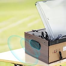 The record player equips with2 Bulit-inpowerful separate speakers, loud enough for most scenes. You can enjoy the stereoscopic,real and live vinyl audio in dual speakers.