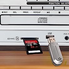 Support to insertUSB/SD/MMC cards.It can play your favourite MP3, WAV and WMA through stereo speakers and also can convert other audio to MP3.