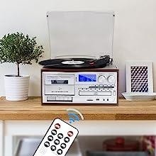 The Record Player equips with aremote controller.You can use it to finish switch songs, convert functions, pause, turn on and turn off and more functions.