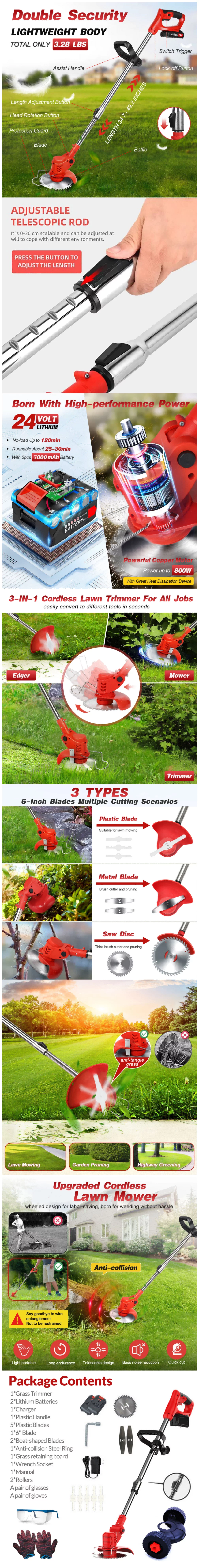 - Cordless Weed Wacker:Foldable, compact and convenient, not bound by wires, easy to carry and use.