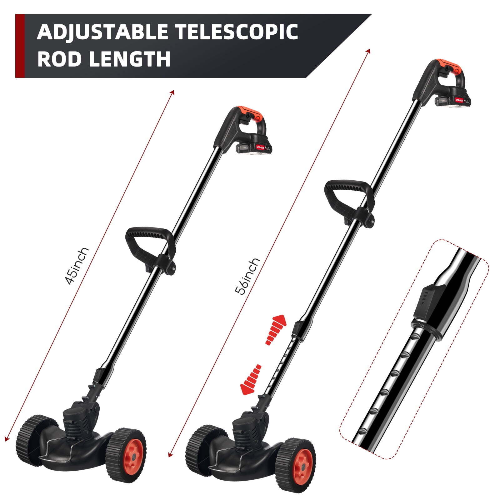 - Weed Eater with Wheels:The cutting diameter can reach 150mm, which is more efficient, and the double front wheel assists, making it more comfortable to work for a long time.