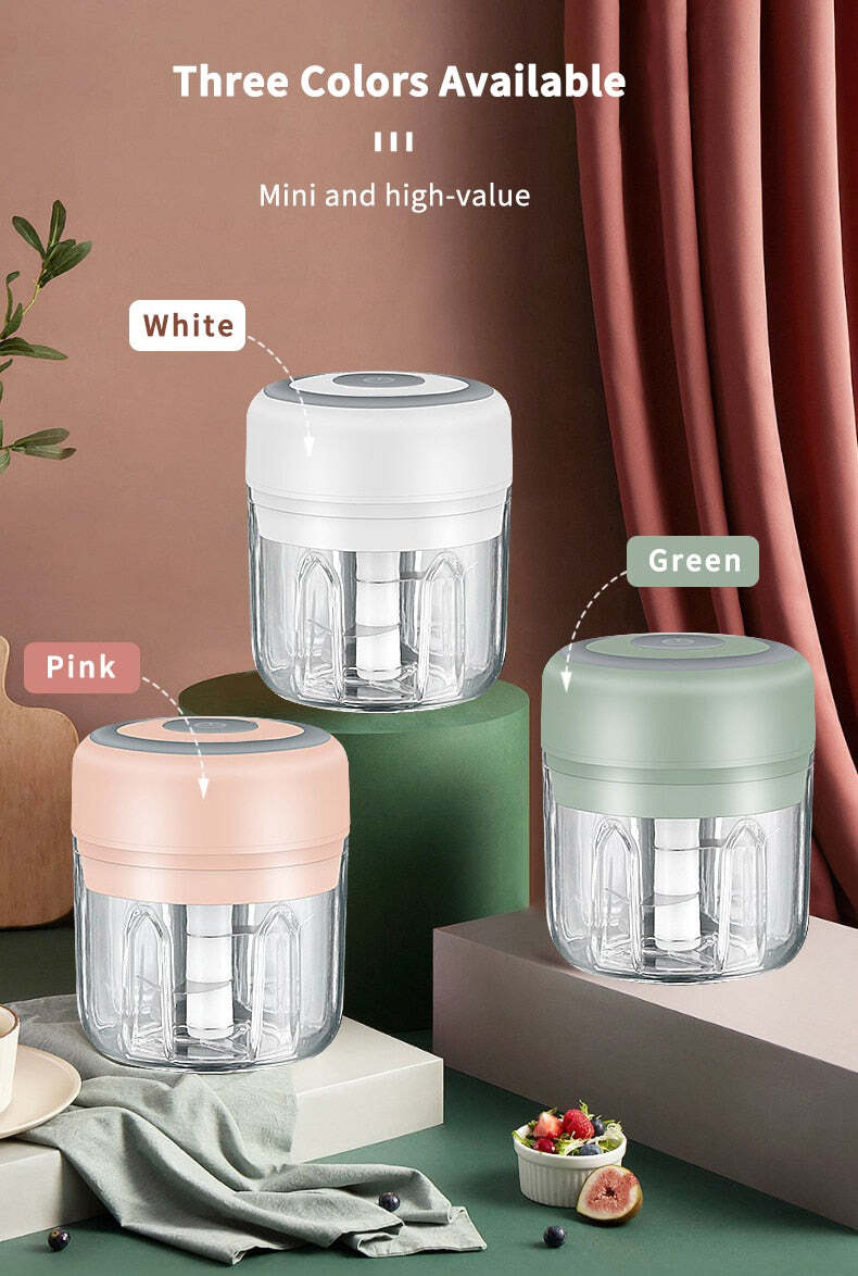 3. Quick Chop: The sharp blade of the garlic chopper can quickly chop garlic, spices, nuts, vegetables, meat, ice cubes, etc. It is very suitable for small foods. You can use it for cooking, supplementing baby food, smoothie drinks.