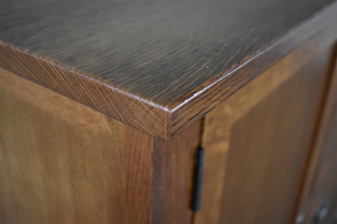 * Solid quarter sawn white oak - medium brown stain - hand rubbed finish