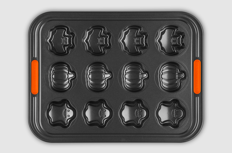 With this Halloween mold of 12 cavities, prepare a beautiful assortment of whimsical treats. Pumpkin, ghost and bat shaped prints are perfect for celebrating Halloween with your loved ones. The mold is oven-safe up to 240°CSet Includes