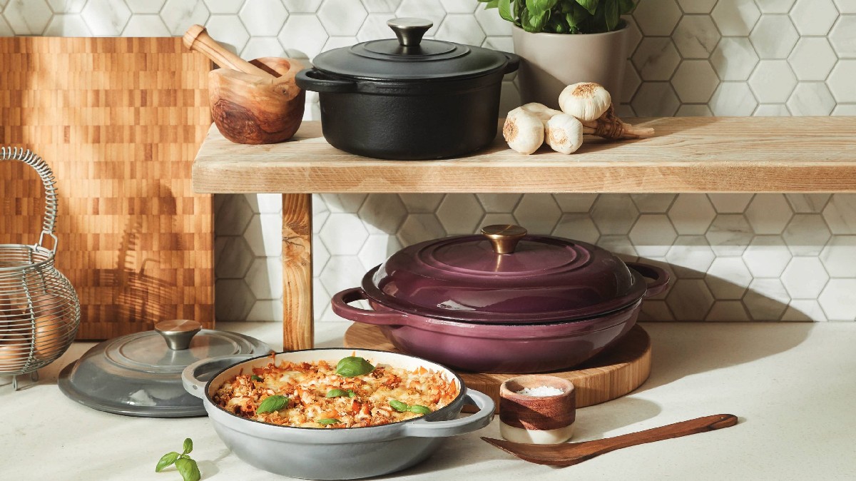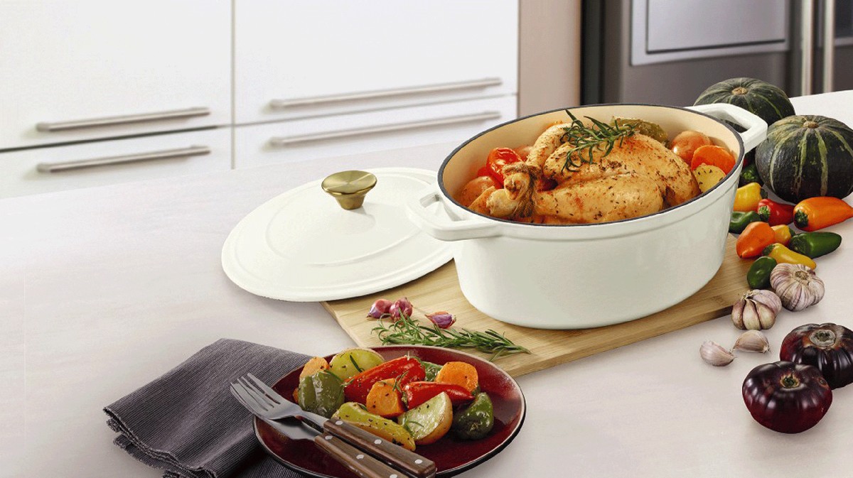 💥Enameled cast iron cookware provides even heat distribution and superior heat retention; colorful exterior enamel resists chipping and cracking