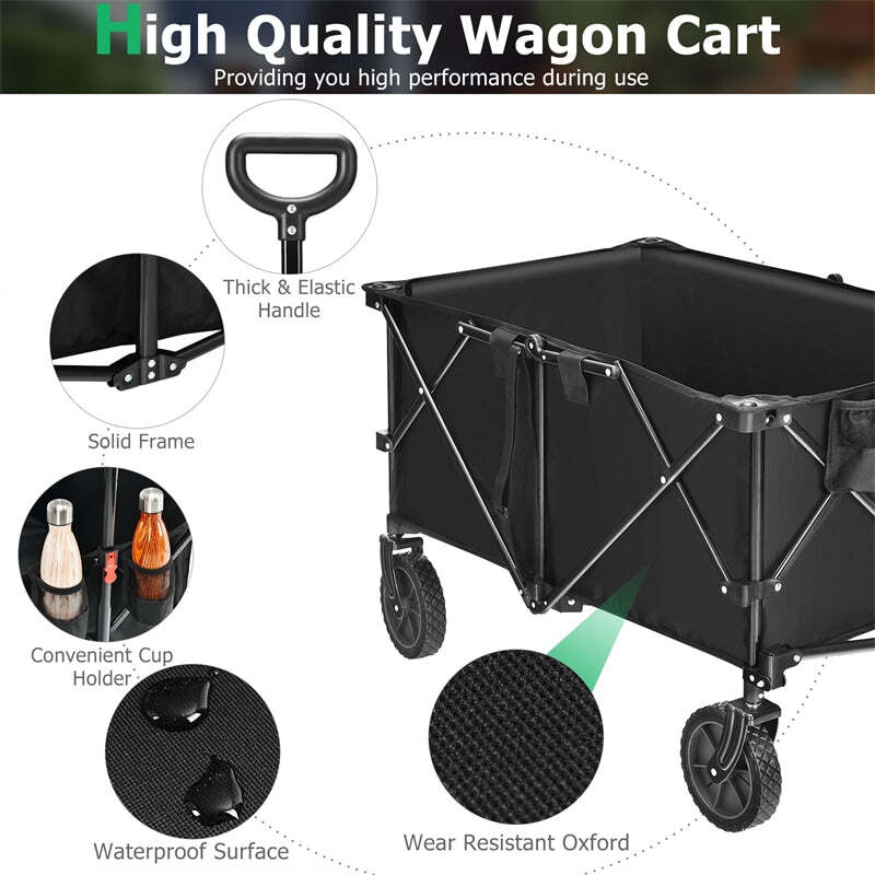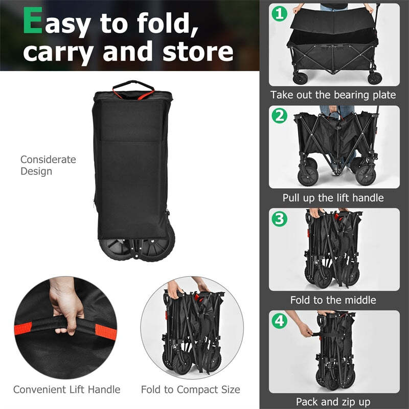 The outdoor collapsible utility garden wagon cart is designed to make your life easier! A perfect choice of trips, sporting events, camping, shopping, and much more!