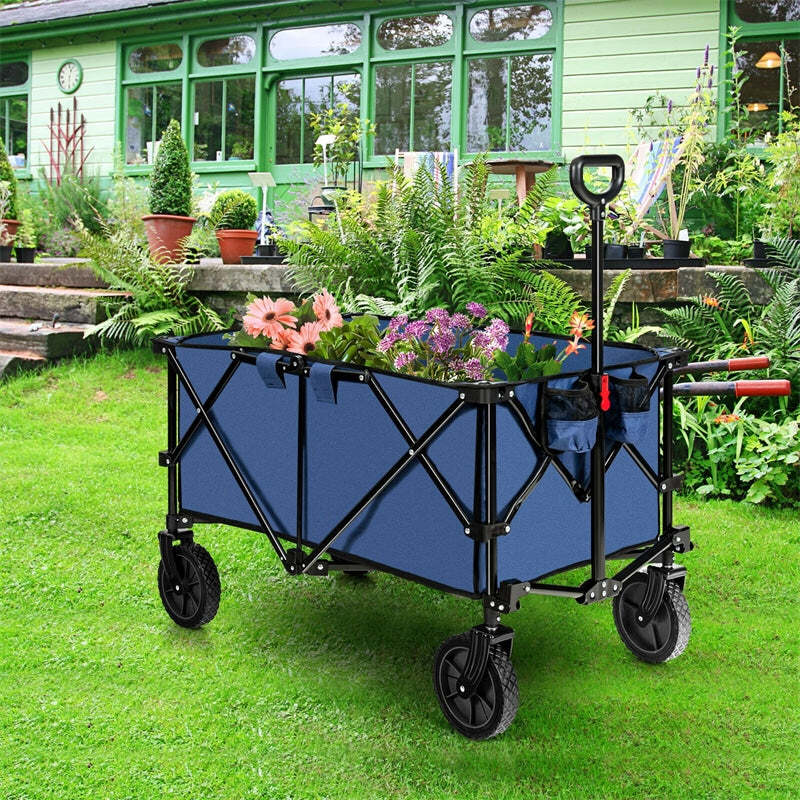 - Large Inner Storage Capacity: With 7.5 cu. ft. spacious storage space, this outdoor folding garden trolley buggy can carry various sports equipment, tools, plants, and other daily items. In addition, the double-mesh front pockets can hold cups and drinks, or tools like pruning shears, hand shovels, etc. On the whole, this collapsible outdoor wagon cart will be a good helper for your shopping and camping.