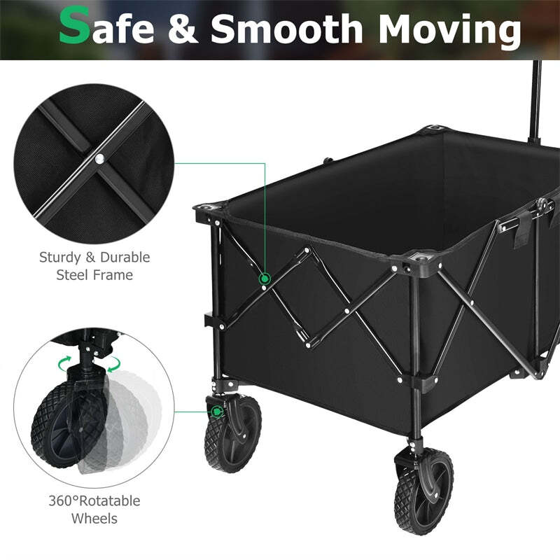 - Wide Application: Enjoy this collapsible utility cart for indoor and outdoor activities such as transporting shopping, going to the supermarket, camping, picnic, outdoor sporting events or just moving things.