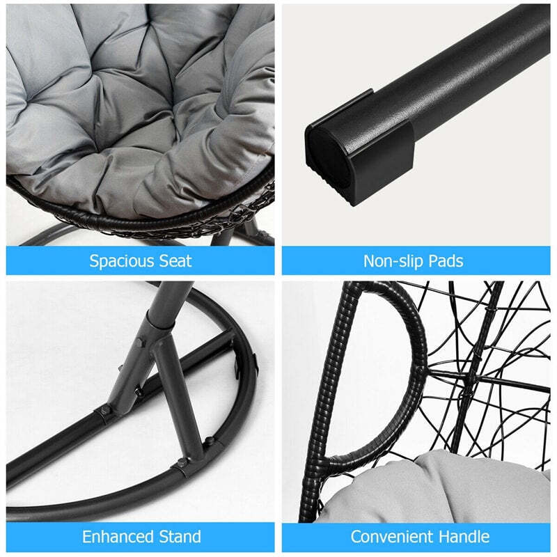- Sturdy & Safe Construction: Made of a heavy-duty steel frame, this outdoor hanging Egg chair with hammock stand set features a high weight capacity with extra support. A strengthened metal frame adds more durability and corrosion resistance to the hammock chair for long-term use. Plus, durable non-slip pads at the bottom also enhance the stability of the hanging hammock chair.