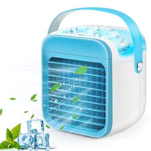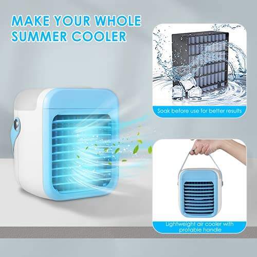 • ❄️【LIGHTWEIGHT DESIGN】Air cooler adopts a mini portable design, which is light and easy to carry.Only takes a few seconds to cool the hot air around you,suitable for room,offices,car,camping, etc.Low energy consumption fit for our low-carbon lifestyle.