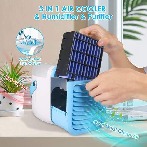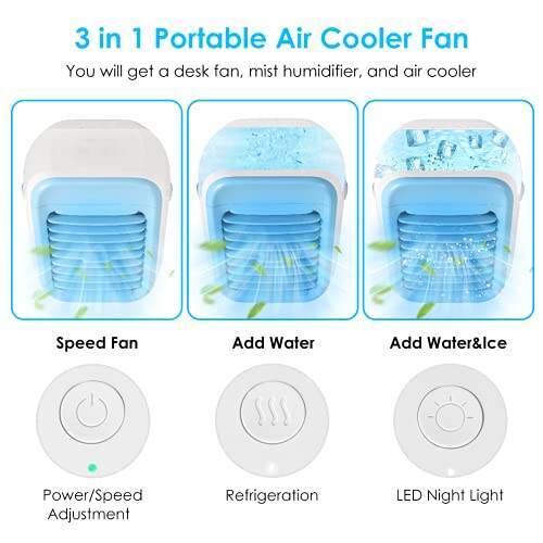 • Portable Air Cooler, Mini3 Fan Speed, Desktop Cooling Fan for Room, Home, Office, Dorm Sterilizer, Humidifier & Purifier