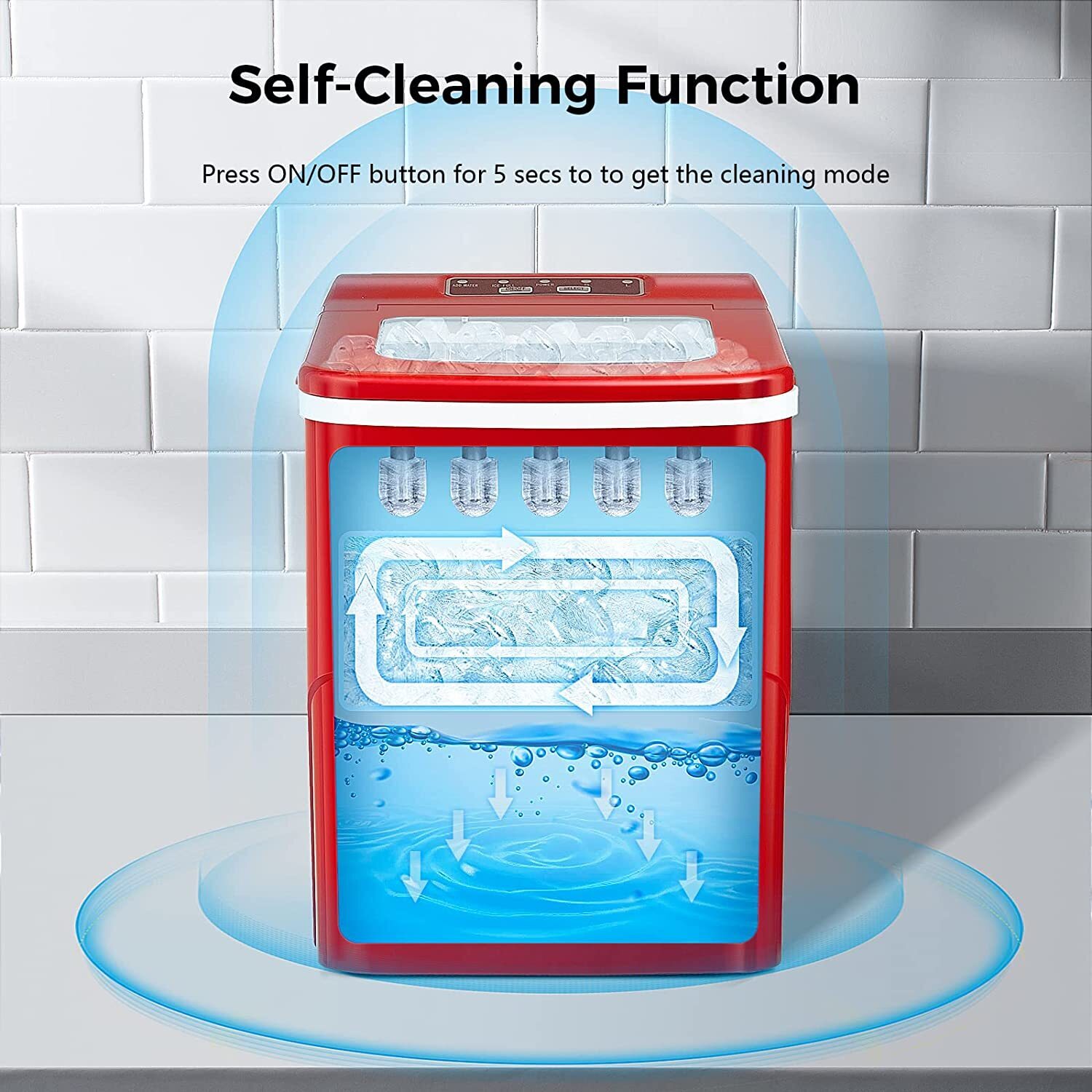 - Multiple Functions with Ice Scoop and Basket: Indicators of our ice machine maker countertop will remind you to take out the ice cubes when the basket is full and inform you to add the water when the ice maker lacks of water.