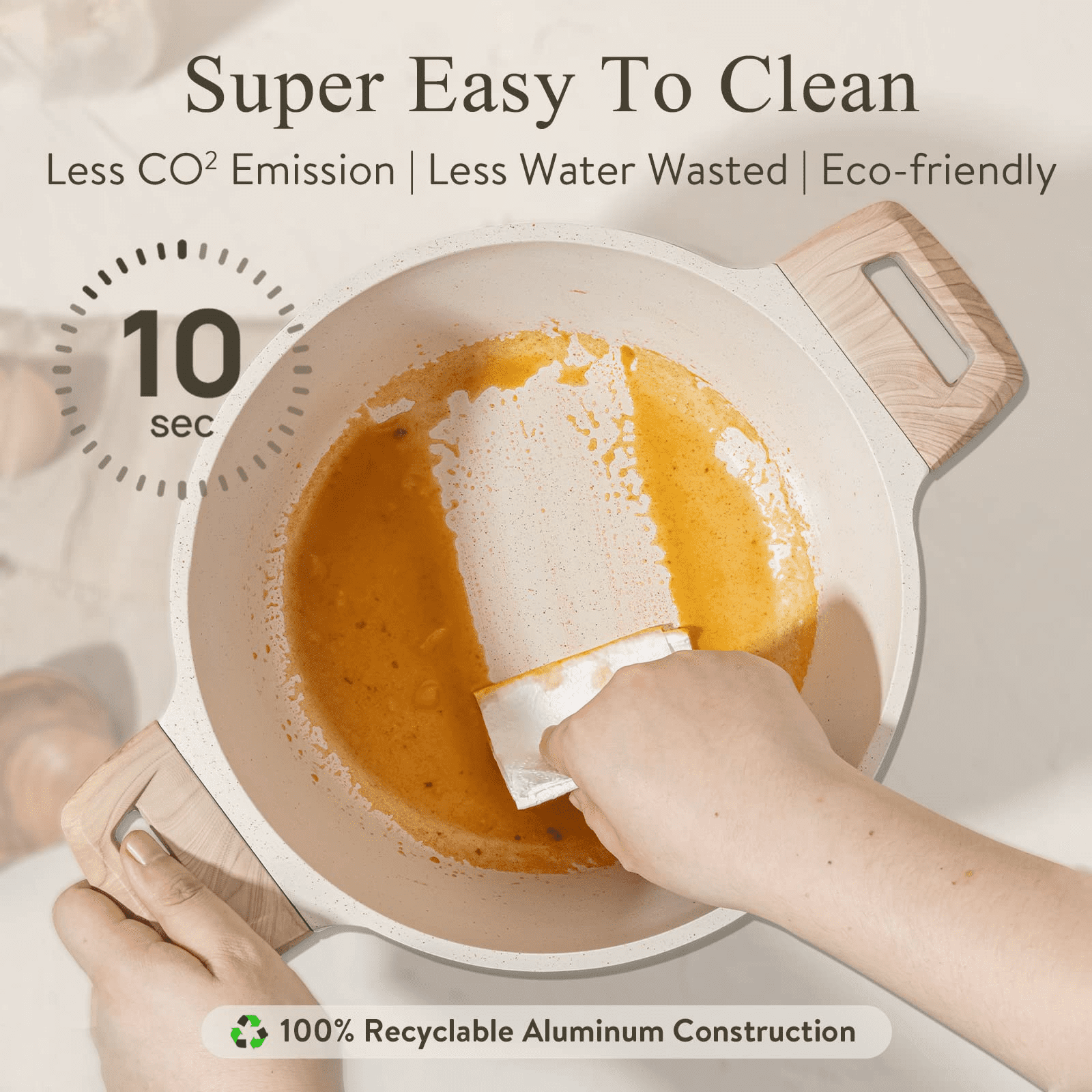 • Excellent Non Stick Performance Made from granite materials, our pots inside texture is smooth, releases food effortless and ensures excellent non stick performance. Cooking with low consistent heat is the key to success for long-lasting nonstick.