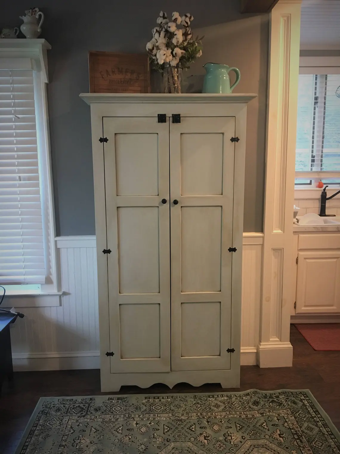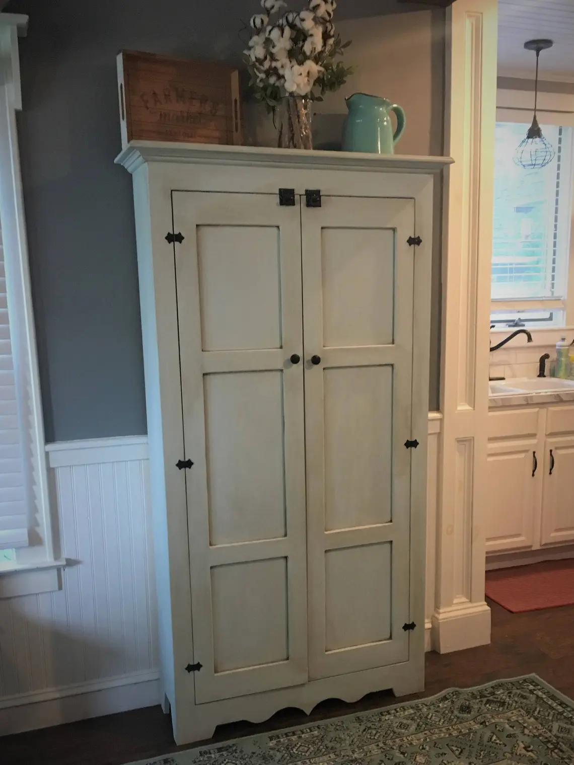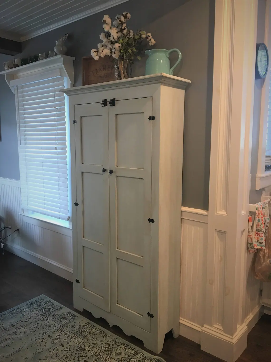 Handmade Pantry Cabinet, Measures 39" wide by 12" deep by 73" tall. Back is finished with Ship lap style. Also comes with two additional adjustable shelves not shown. This will enhance any room.