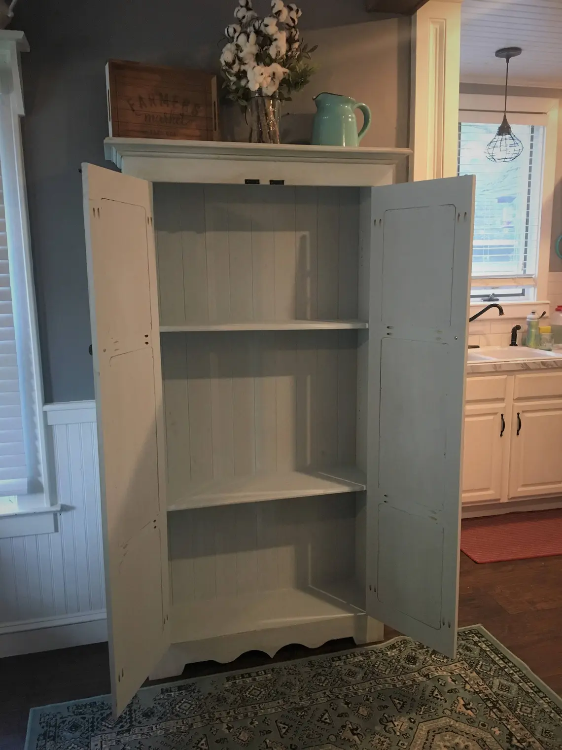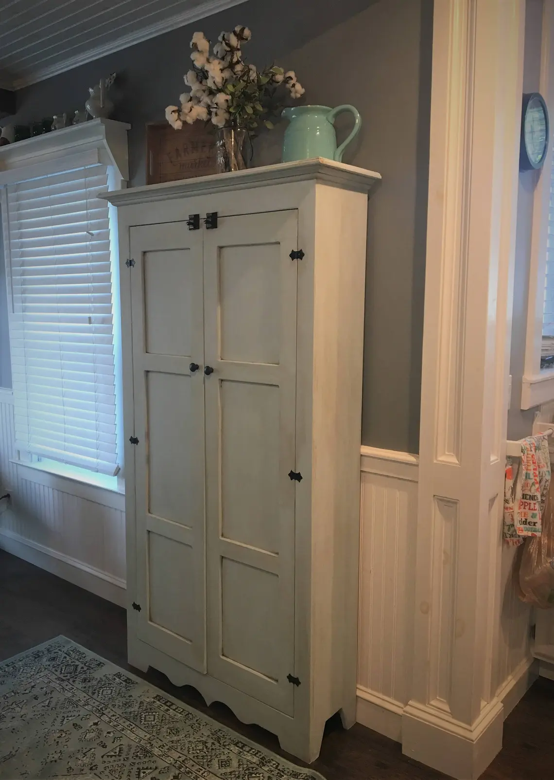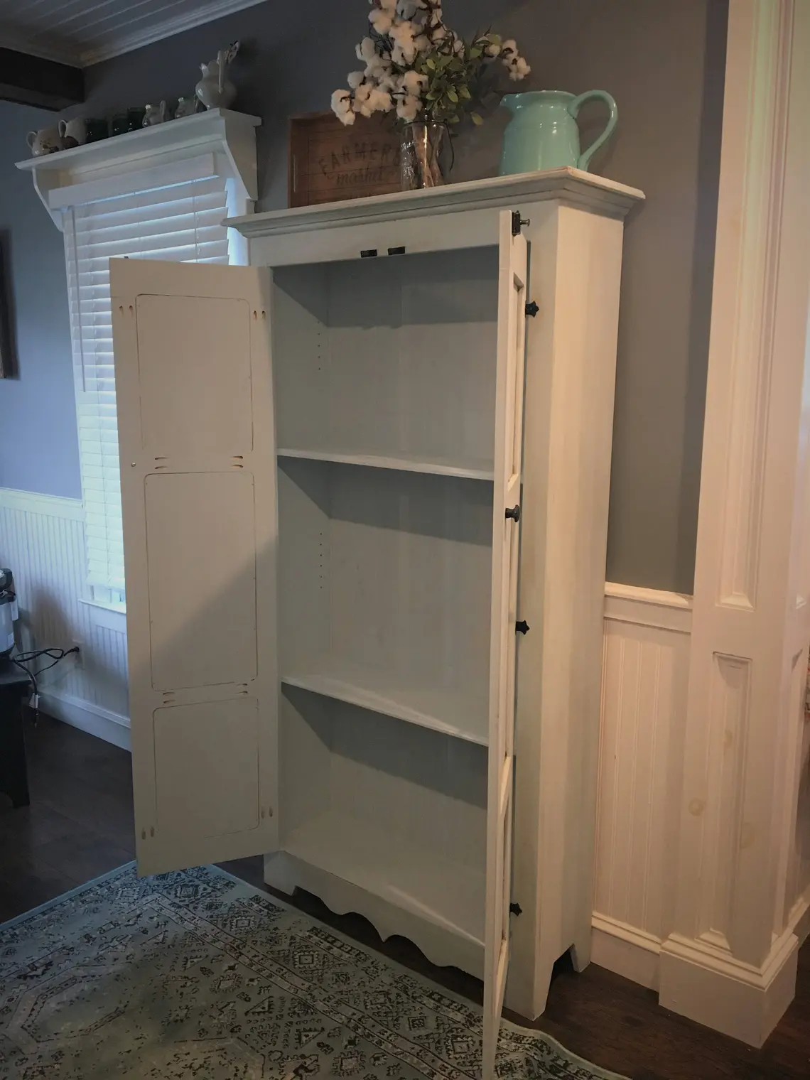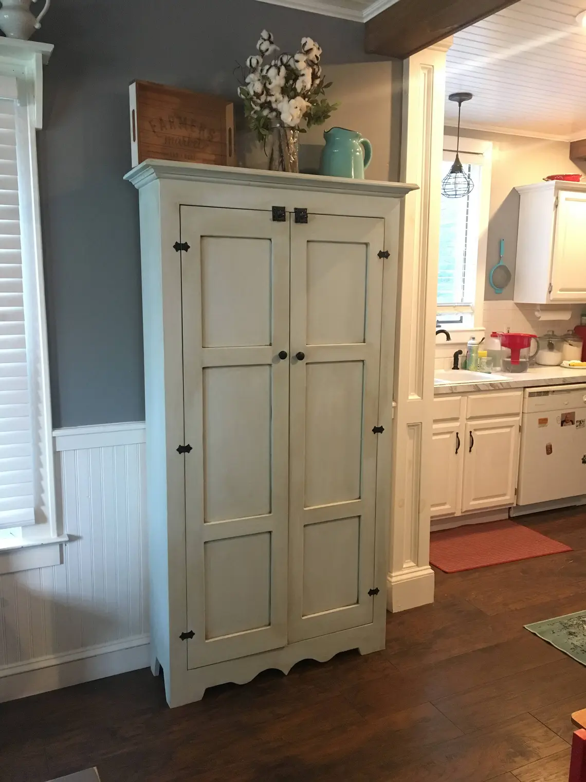Handmade Pantry Cabinet, Measures 39" wide by 12" deep by 73" tall. Back is finished with Ship lap style. Also comes with two additional adjustable shelves not shown. This will enhance any room.