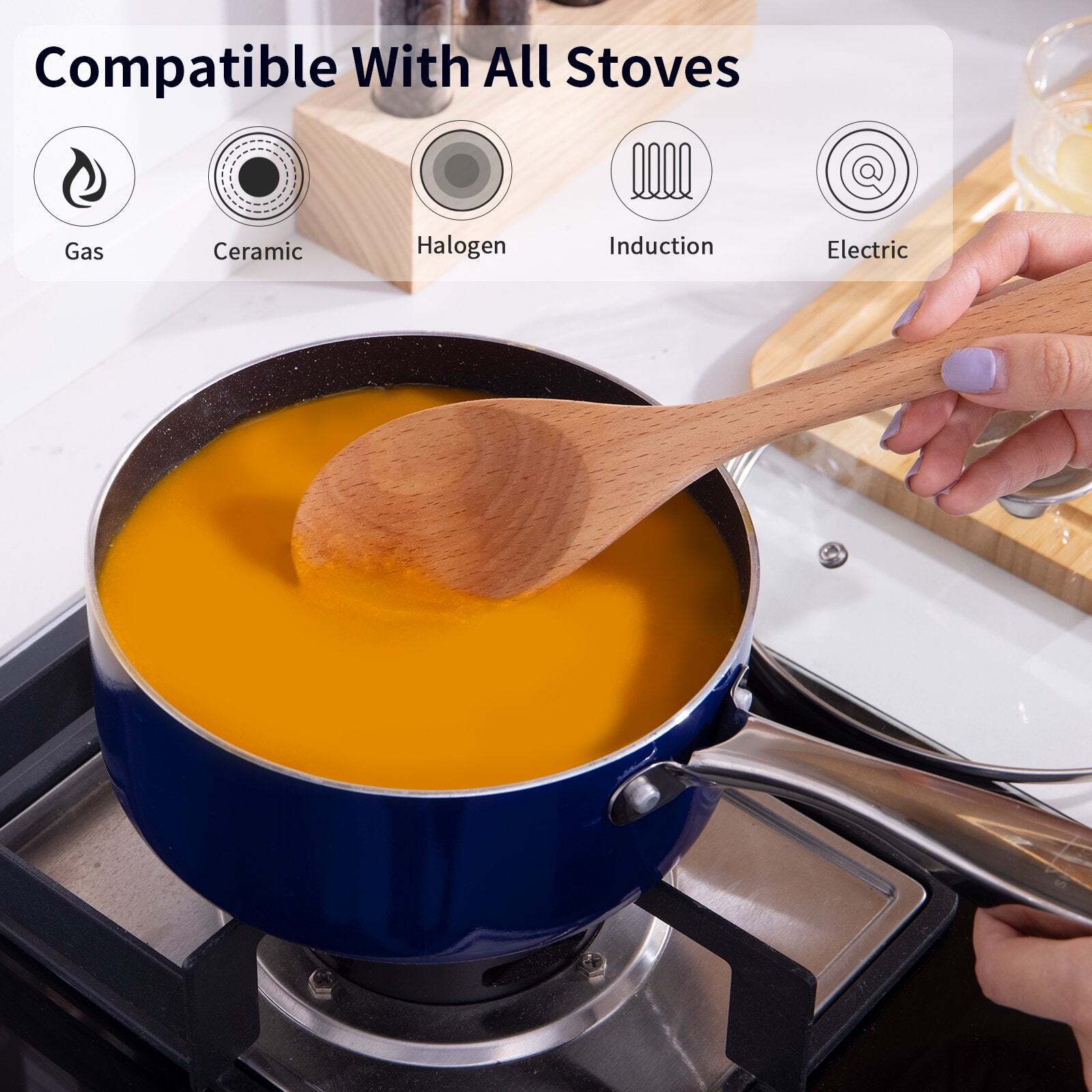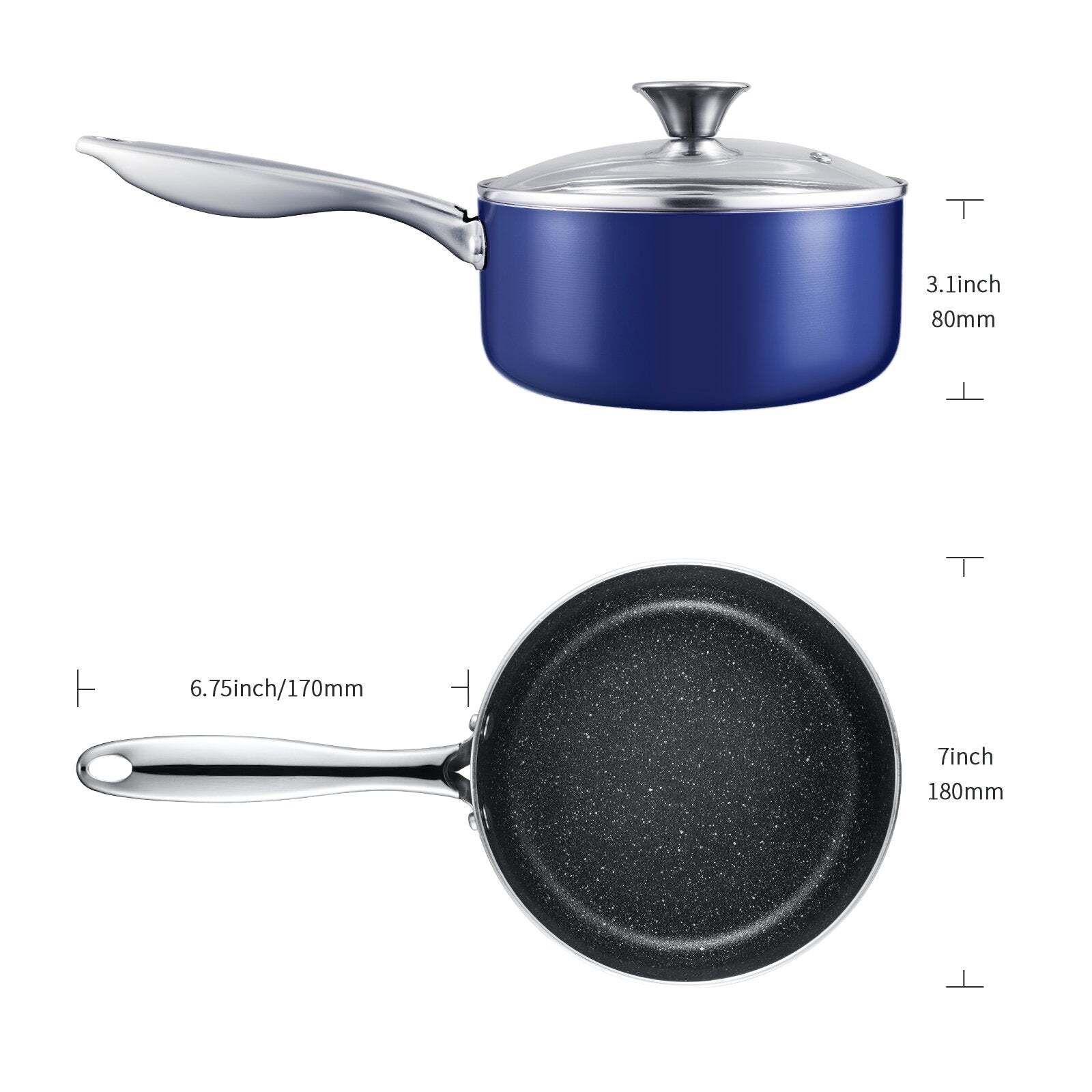 Sauce Pan with Lid, Nonstick Saucepan 2 Quart, Granite Coating-PFOA Free Saucier Pot