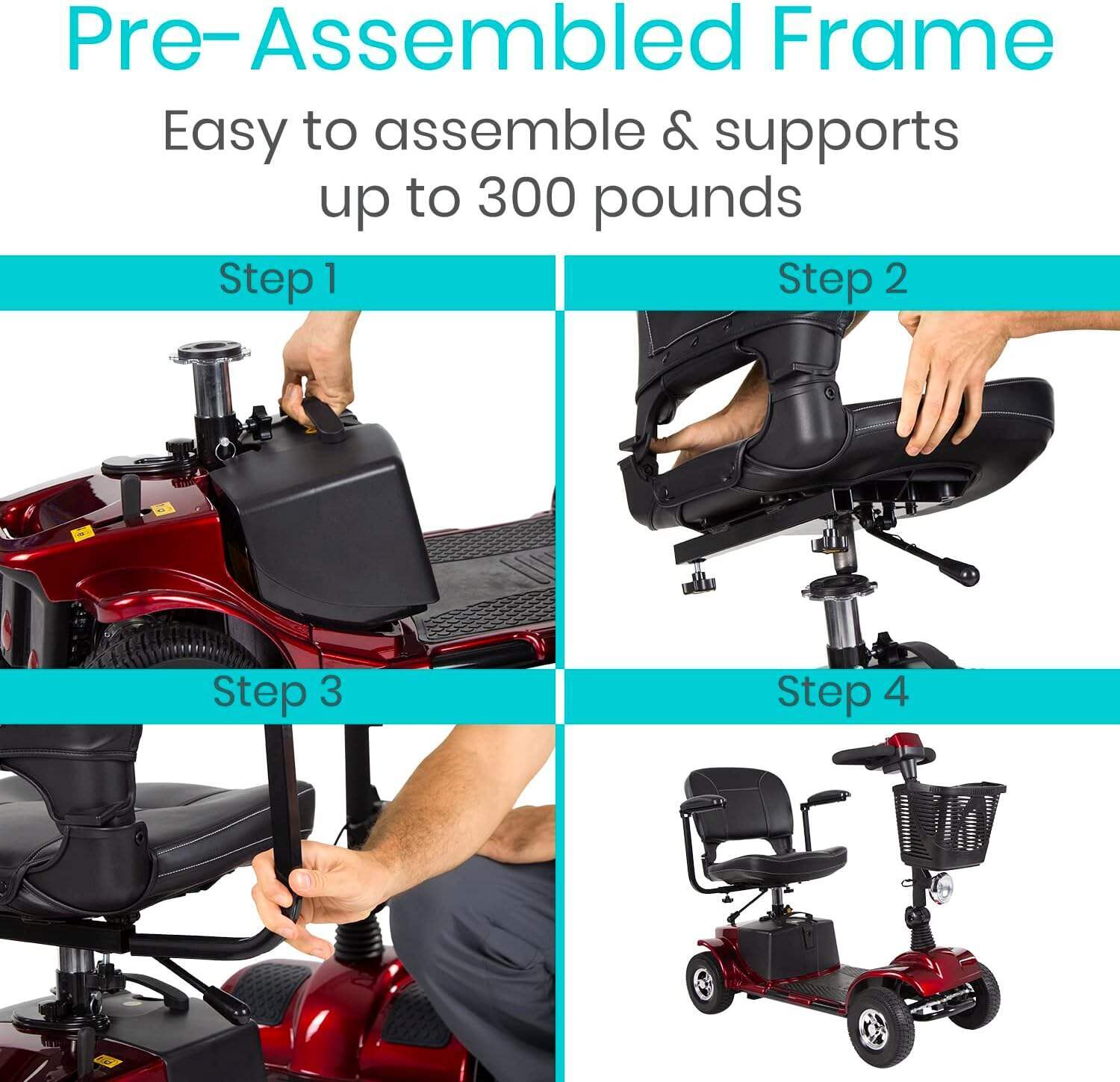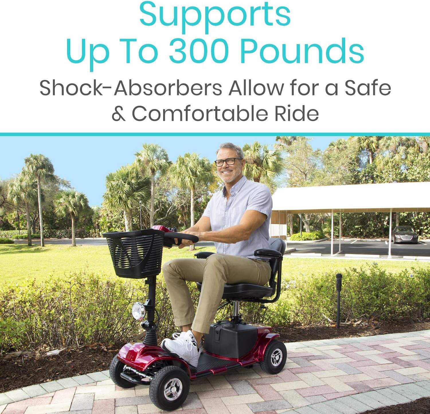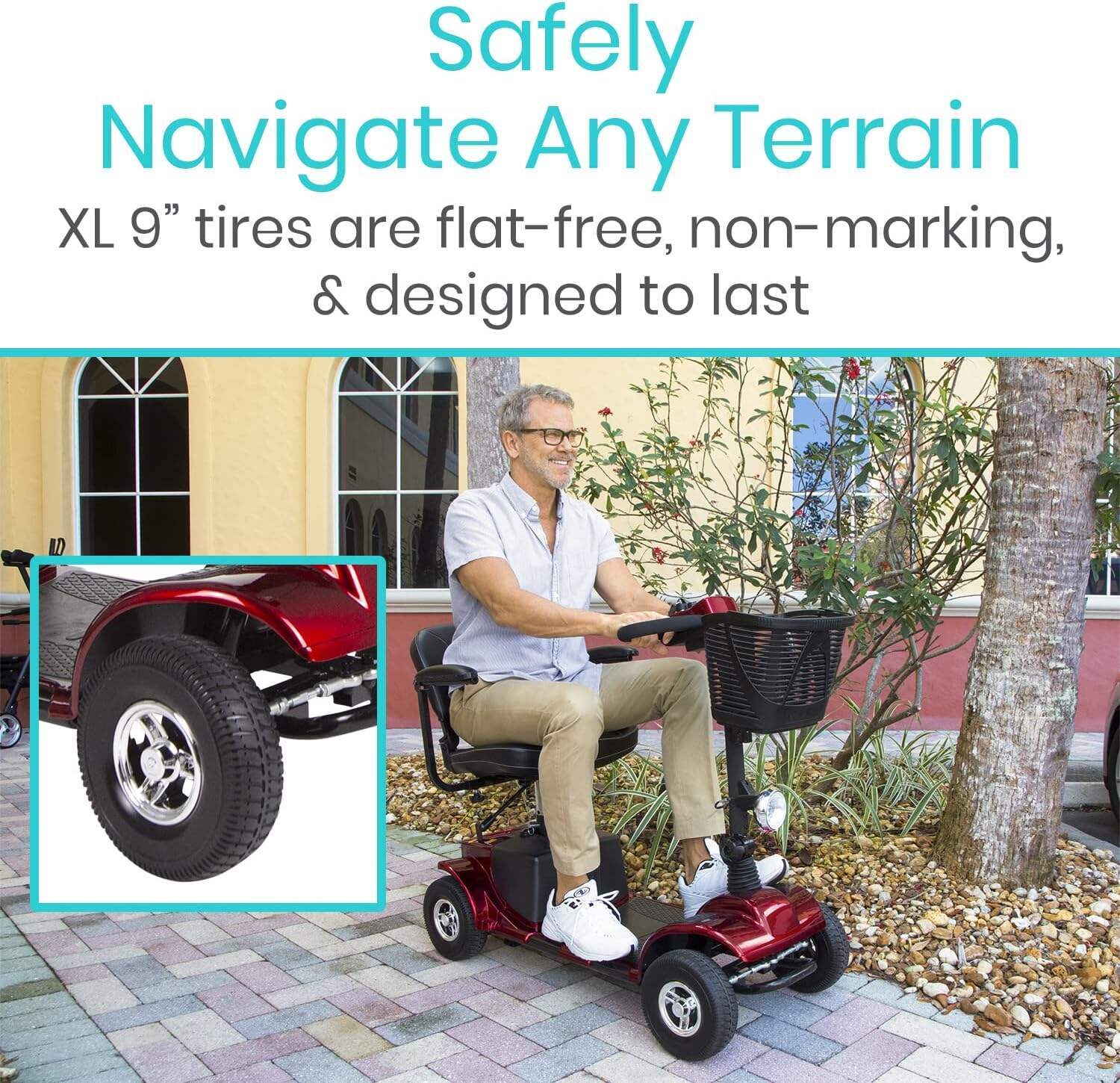 - EXPERIENCE SMOOTH & SAFE MOBILITY: Opt for the Vive Series A Mobility Electric Scooter over other scooters for its unparalleled performance and seamless ride–perfect for use at home, in markets, or on the go. With a 3.5" ground clearance and four 9" flat-free tires, the scooter easily clears door jambs and handles various flooring transitions, setting it apart from the competition.