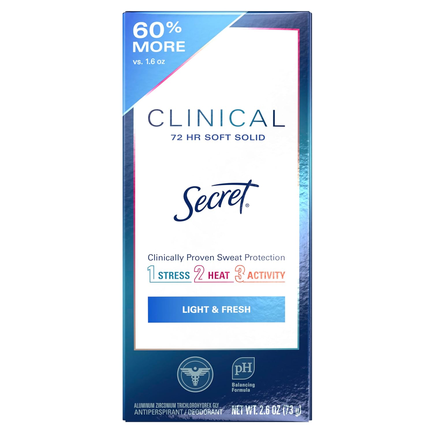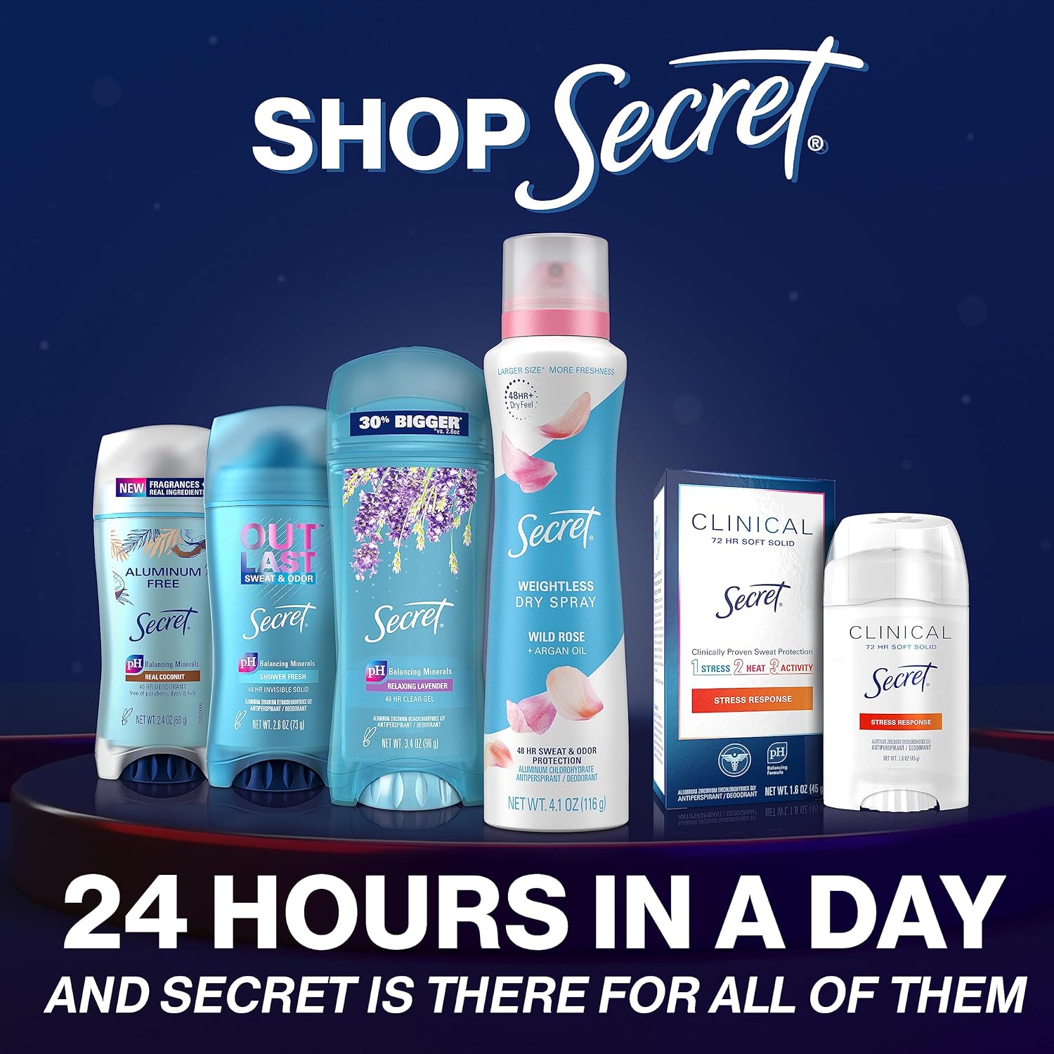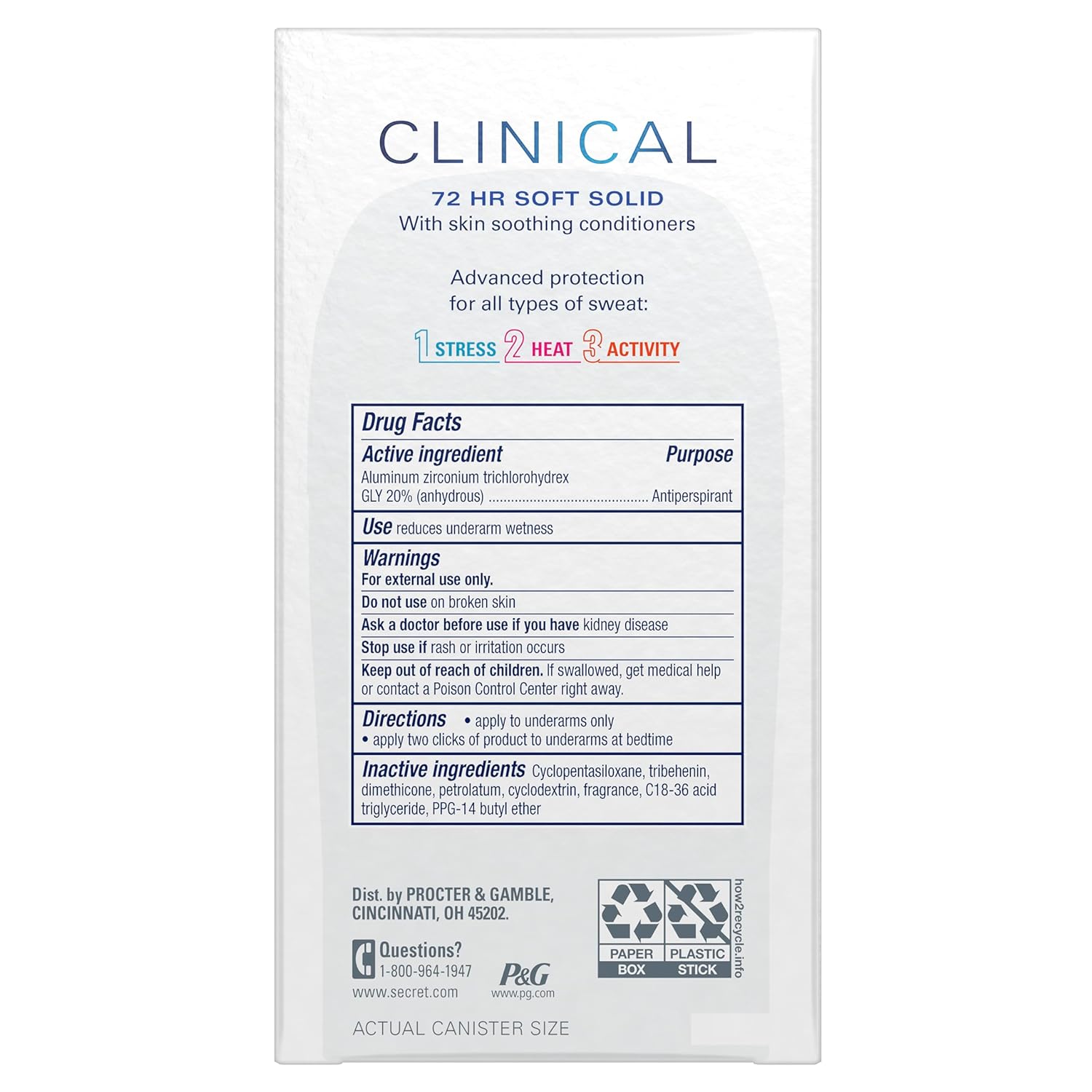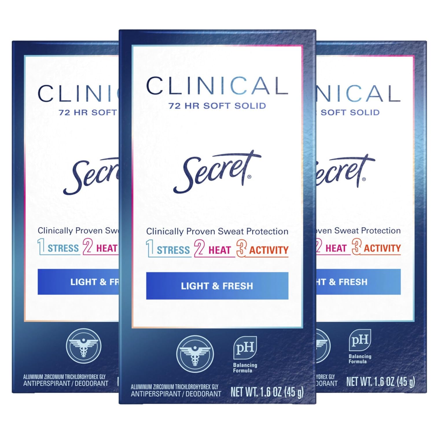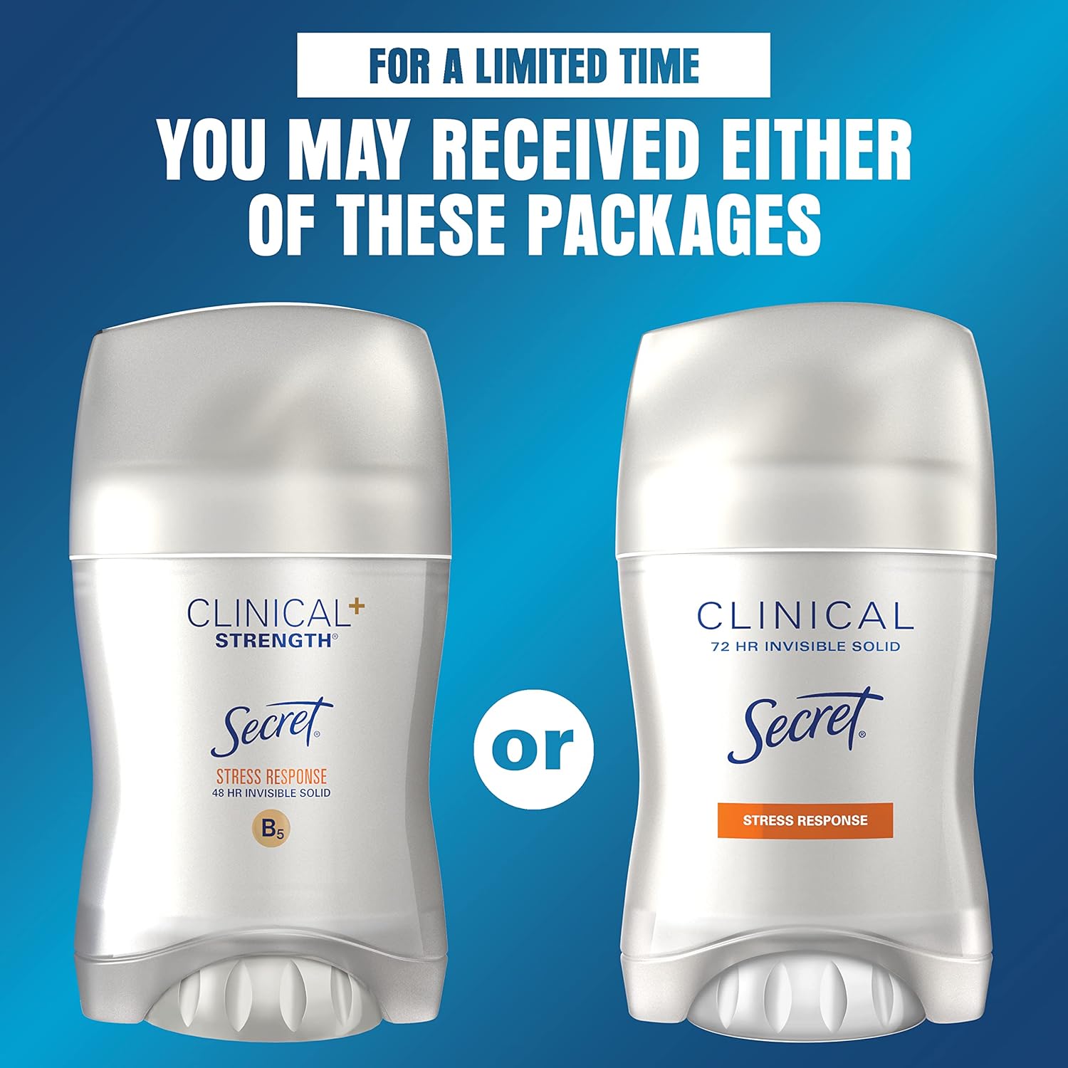 • Secret Clinical Strength Antiperspirant and Deodorant Women, Soft Solid Stress Response, 72 Hr Sweat Protection, 1.6 oz (Pack of 3)