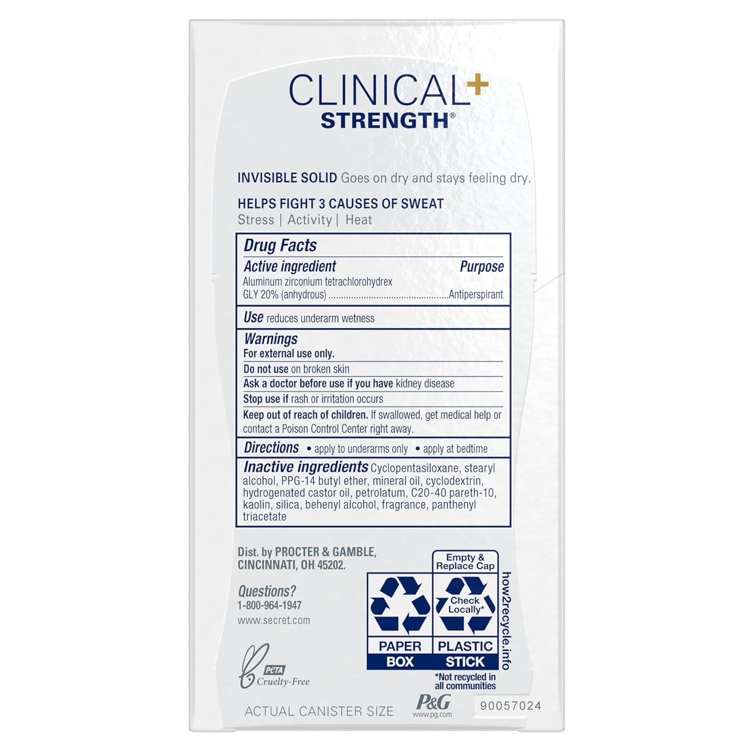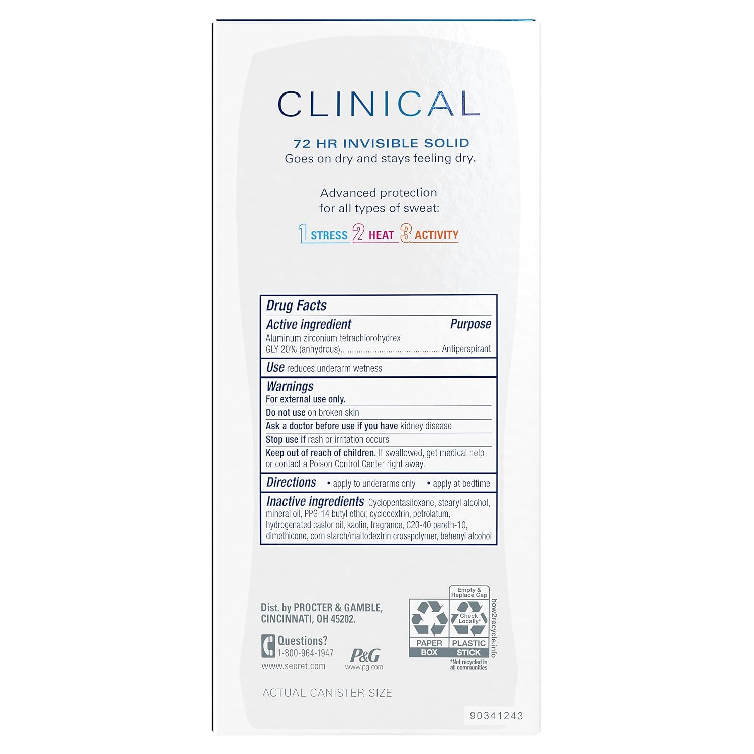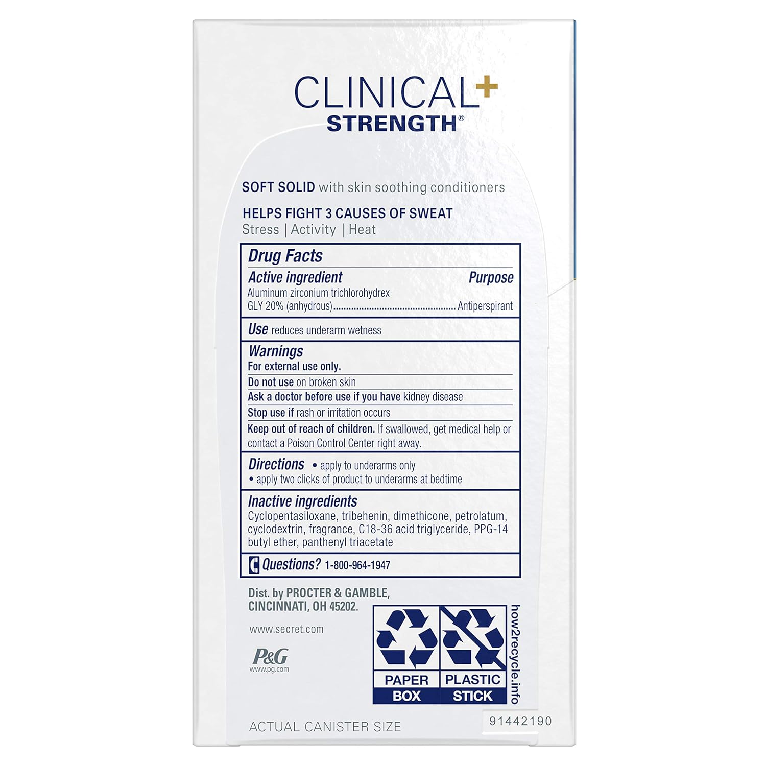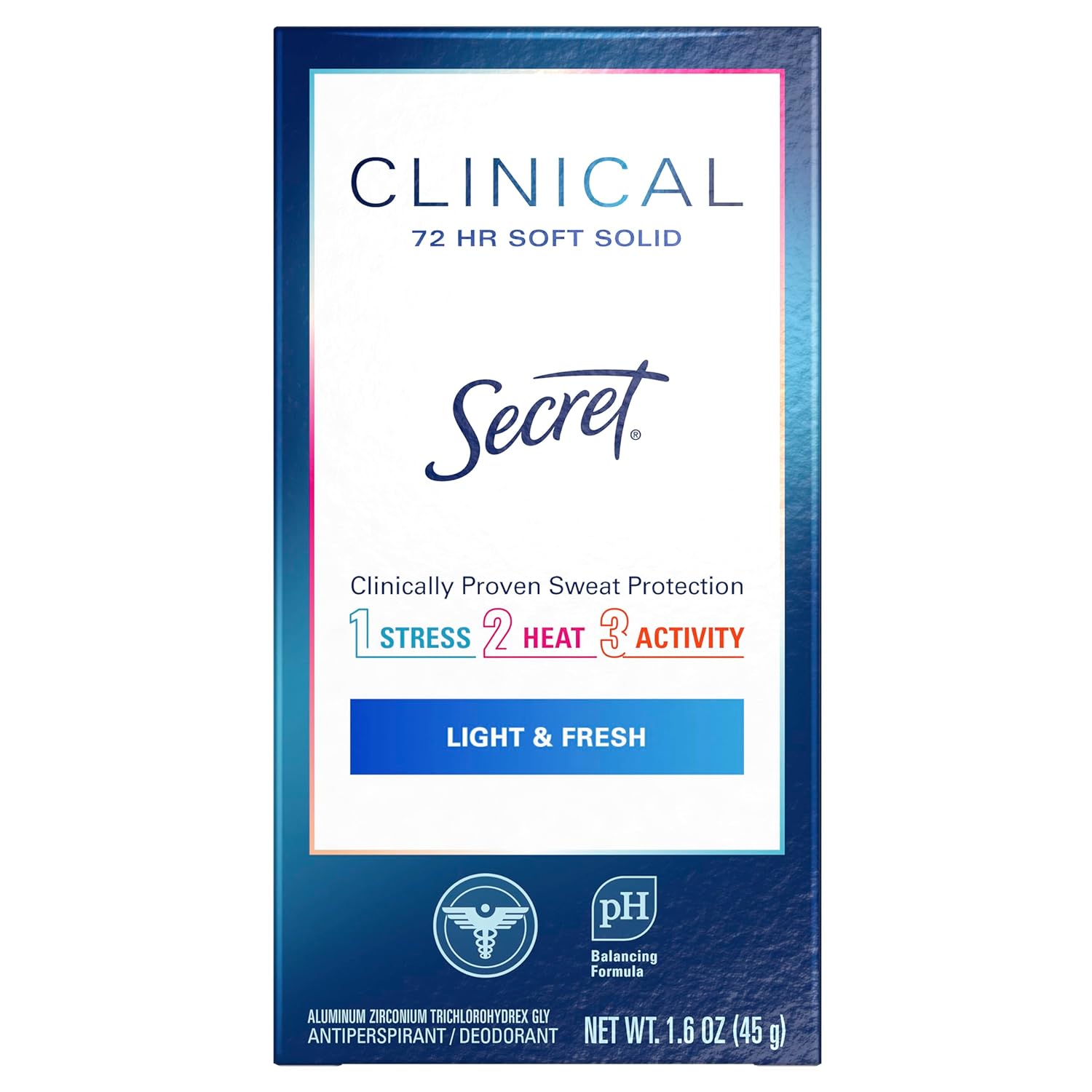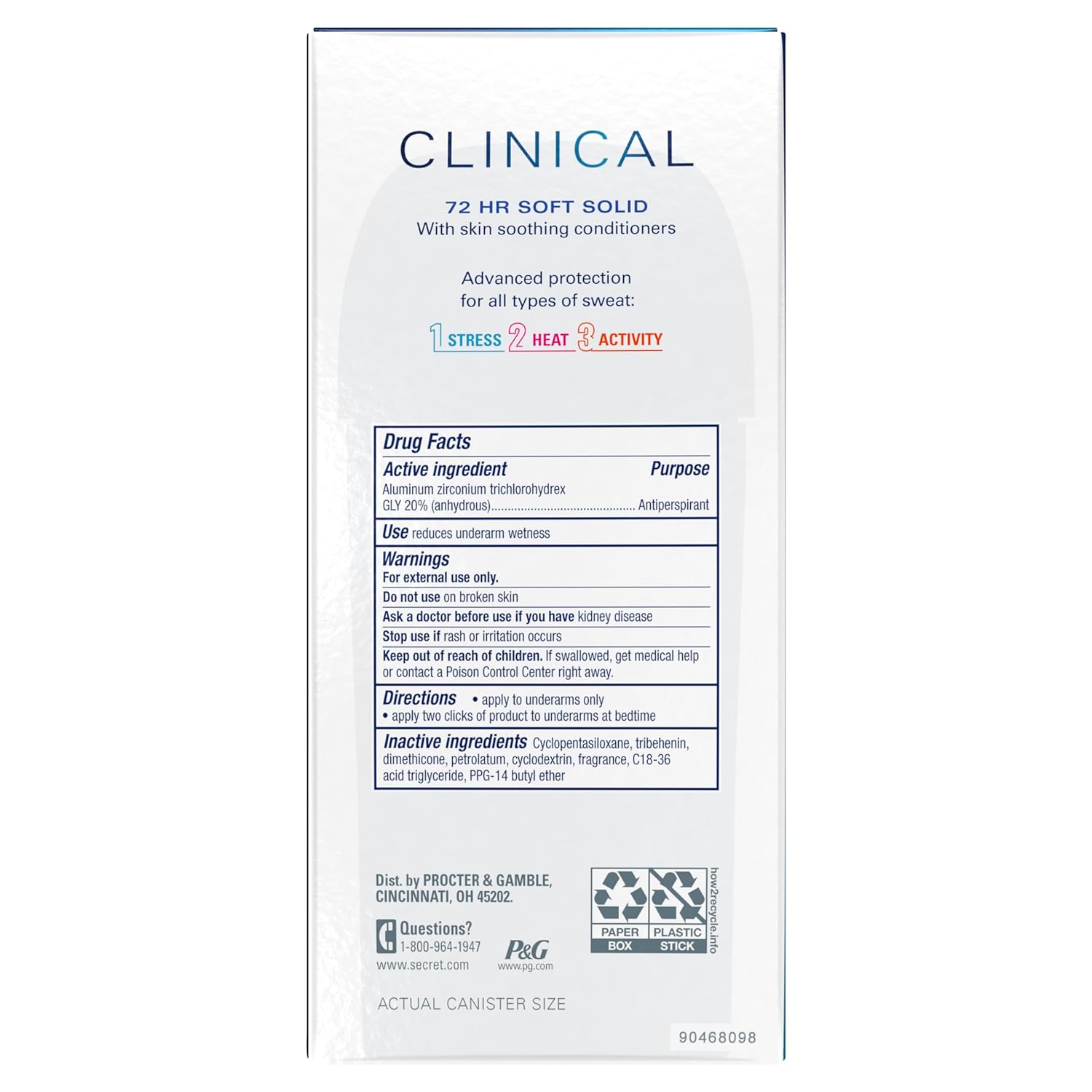 • Secret Clinical Strength Antiperspirant and Deodorant Women, Soft Solid Stress Response, 72 Hr Sweat Protection, 1.6 oz (Pack of 3)