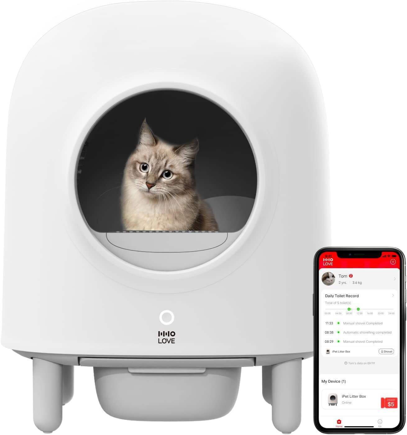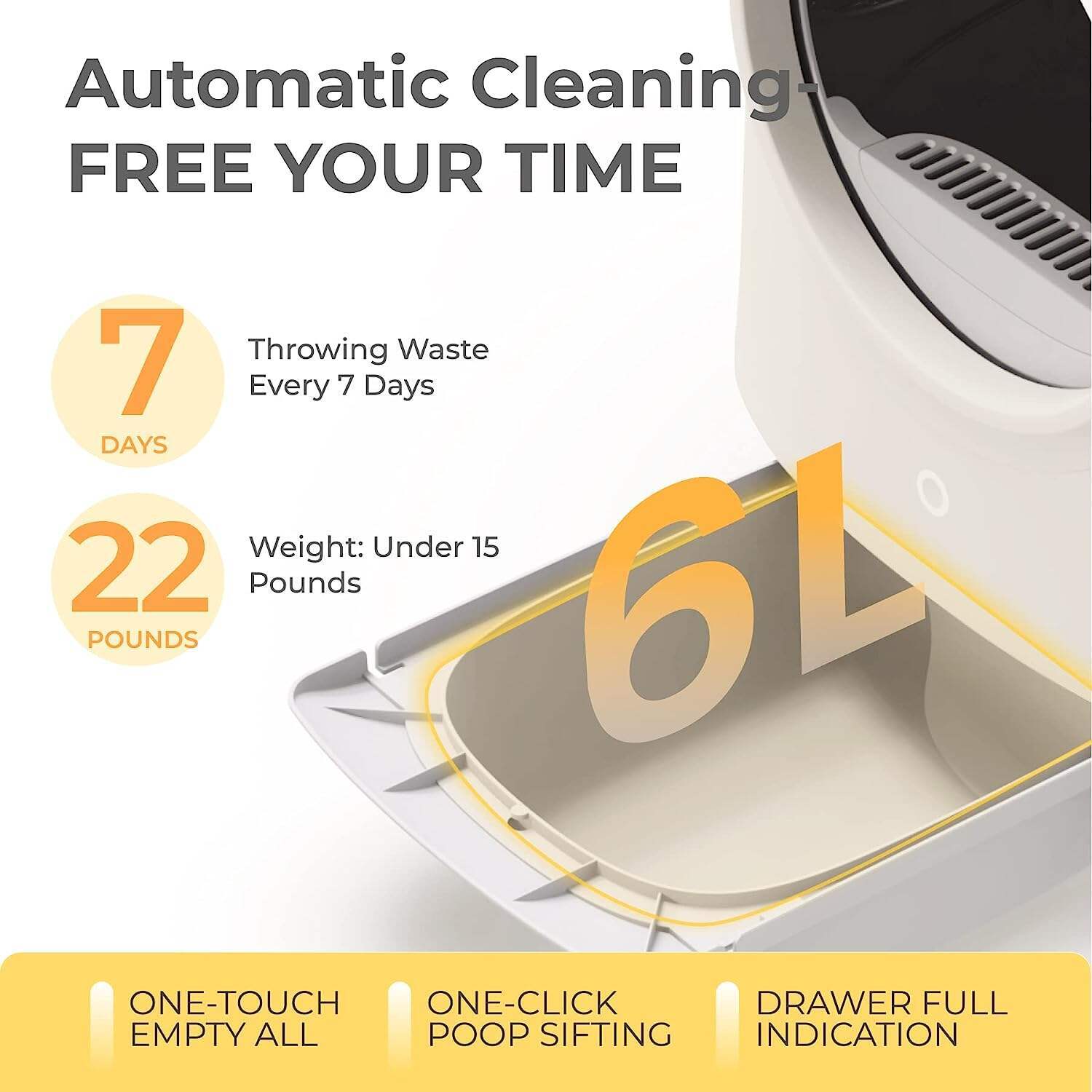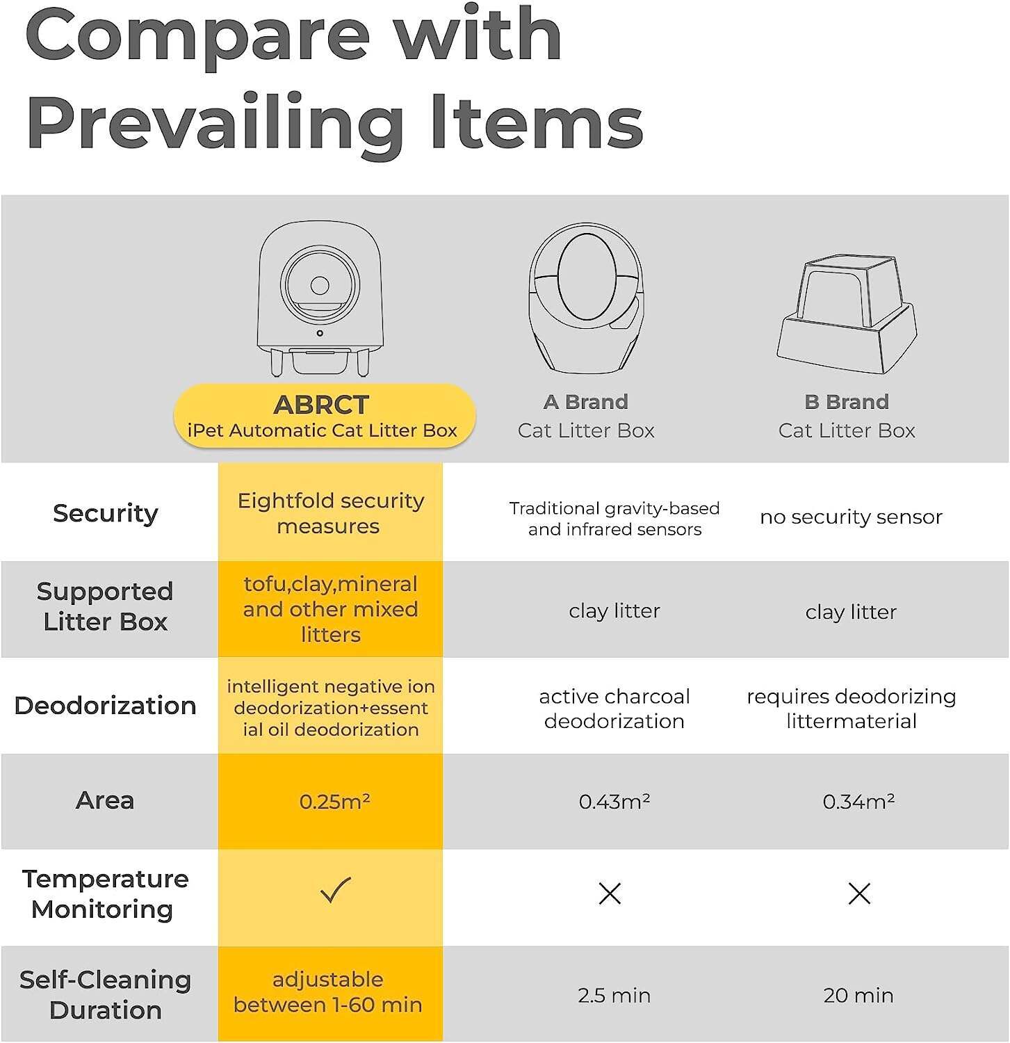 • Self Cleaning Cat Litter Box, ABRCT Extra Large Automatic Smart Cat Litter Cleaning Robot Box for Multiple Cats with APP Remote Control, Intelligent Radar Safety Protection,Alerts, No More Scooping
